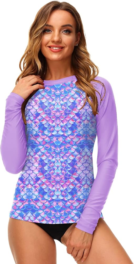 ☀️Rash Guard Features - Sun Protection, Blocking Harmful Ultraviolet UVA and UVB rays Swim top with Raglan Color Block Sleeve, Floral Tropical Print.
