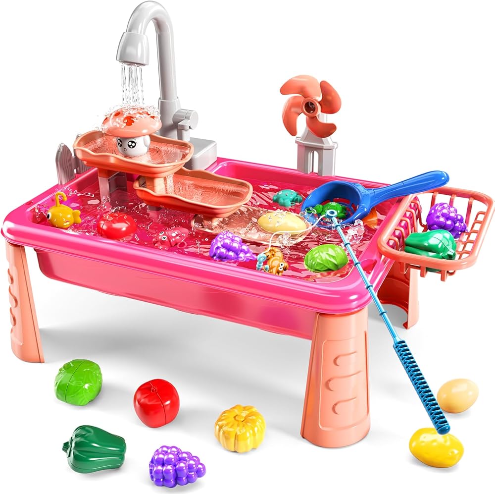 Kitchen Sink Toys Toddlers 3-5, Play Sink with with Electric Water Pump, Water Table for Kids Ages 4-8, Fishing Game Outdoor Toys Pretend Role Play Toys for Boys Girls 3 4 5 6 7 8