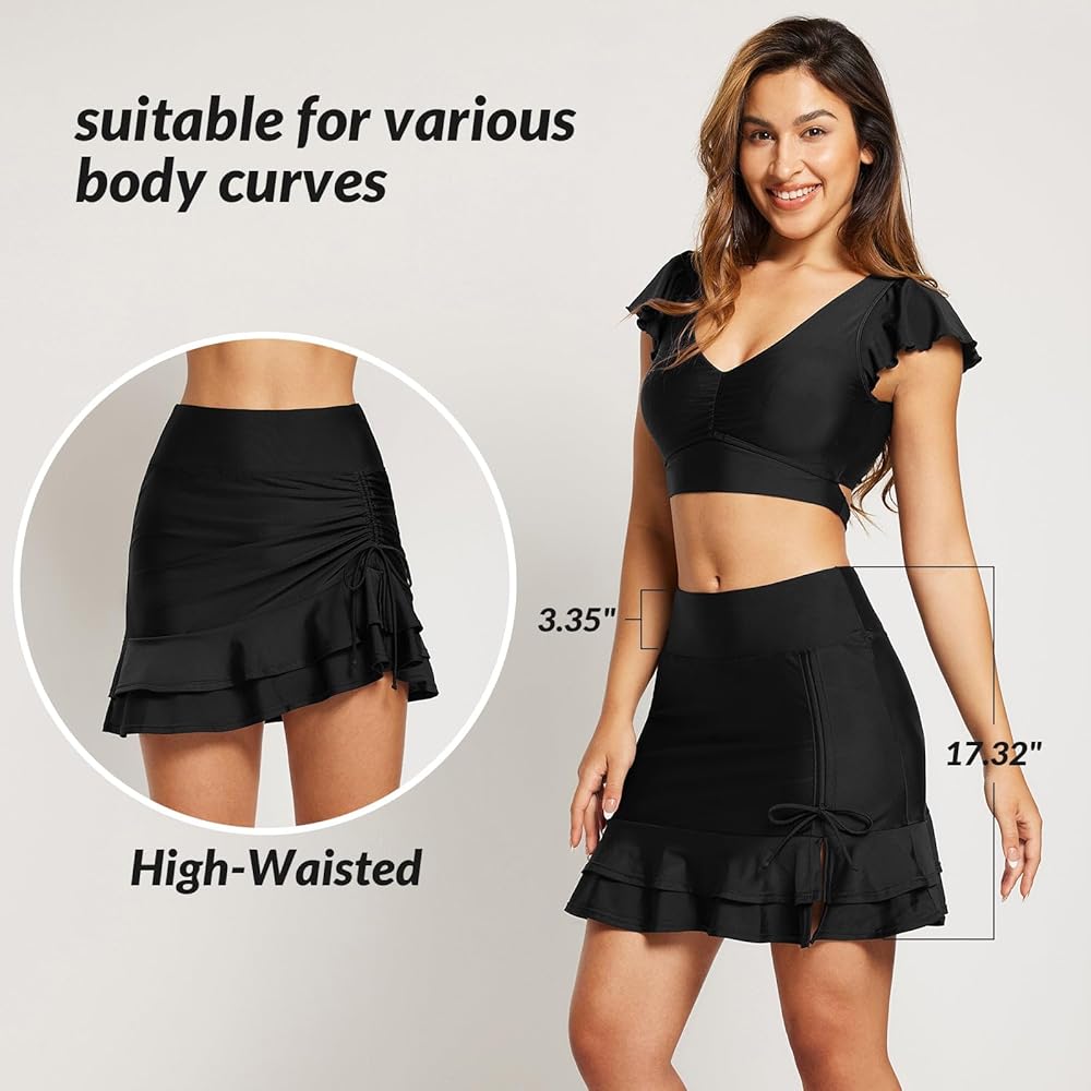 - Drawstring & Ruffle Design: Ruched swim skirt has a side slit pull tie showing your legs slimmer and longer while covering your butt perfectly