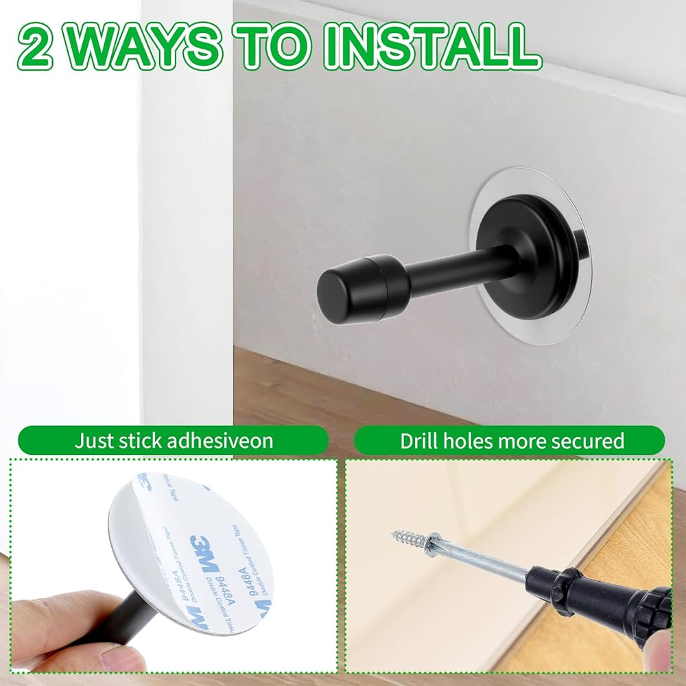 【2 INSTALLATION WAYS】- The door stop comes with a hardware kit, including screws, and plastic expansion anchors make it easy to install on the wall or door and are very sturdy. You can also install it without drilling via the included self-adhesive base.