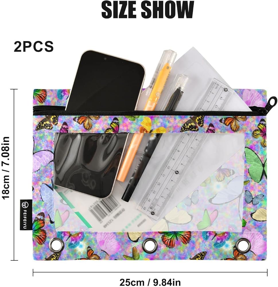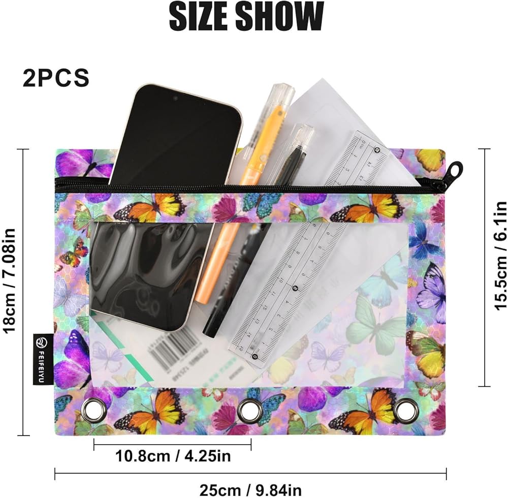 【Size】Pencil Pouch for 3 Ring size is 9.84 inchesx7.08 inches (25x18 cm). This pencil case is large enough with enough room for pens, pencils, erasers, rulers and other stationery to keep your supplies organized.