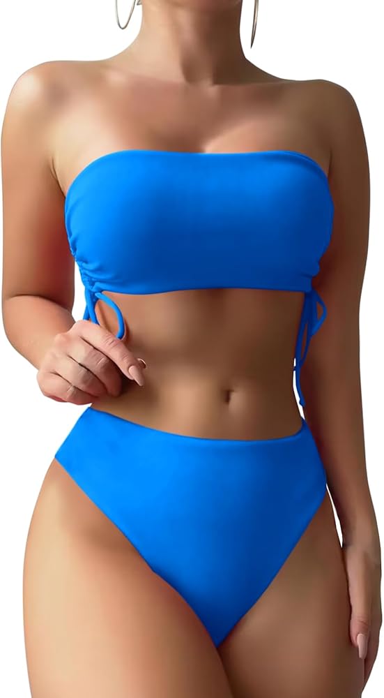 The stylish tube top bikinis feature removable spaghetti straps, adjustable side drawstring, wire free and detachable soft padding bra, providing excellent support makes your figure look more fit and cute.