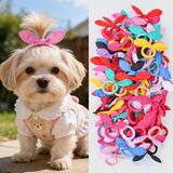 COMPLETE SET: Package includes 100 pieces of colorful rabbit ear hair bows with secure elastic bands for pet grooming and styling