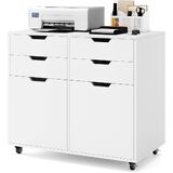 The rolling file cabinet boasts a generous storage capacity, with a wide top ideal for a printer stand and four spacious drawers to keep your notebooks, stationery, and other essentials neatly organized. Additionally, the two large cabinets with doors offer ample space for files, books, and storage boxes. Designed for easy mobility, this mobile filing cabinet features five 360° swivel casters, including two with brakes, allowing you to effortlessly move it around or lock it securely in place. It is suitable for both home and office use. Better still, you can conveniently place it under the desk for use.