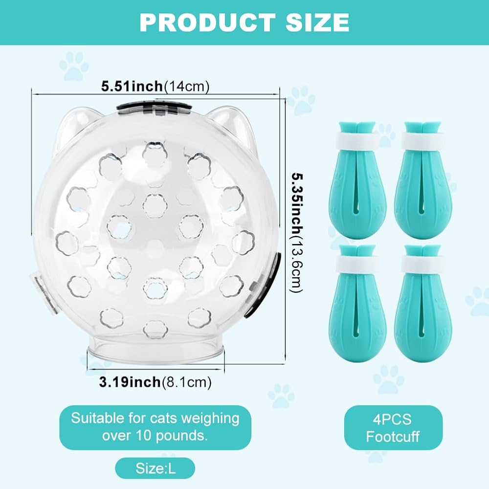 【Practical Multi-Use Protection】Fit for vet visits, grooming, baths, or nail trims, this set prevents biting, scratching, and furniture damage. Helps calm cats, ensuring stress-free handling and a safer environment for both pets and owners.