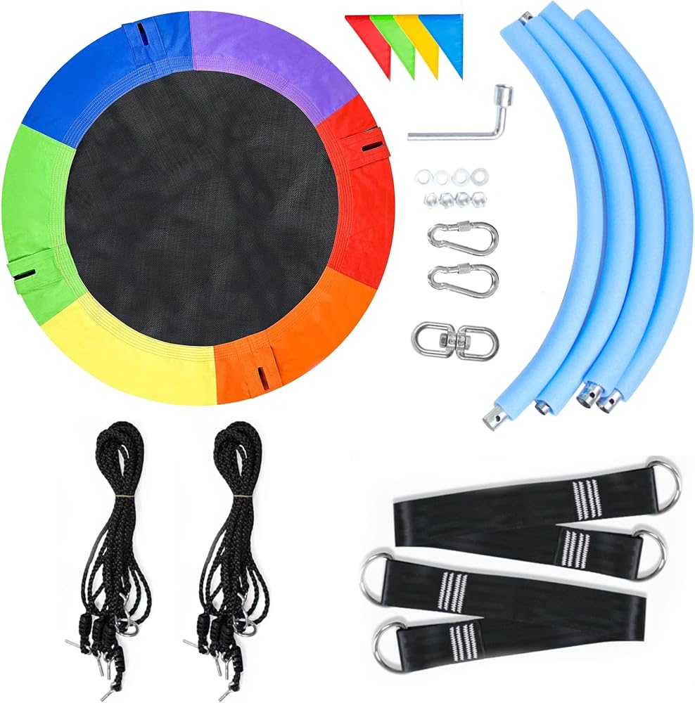 40 Inch Saucer Tree Swing for Kids, 900lbs Swings Seat for Children with Adjustable Hanging Straps Waterproof Safe Durable Swing Sets for Indoor Outdoor Backyard Playground, Multi-Coloured