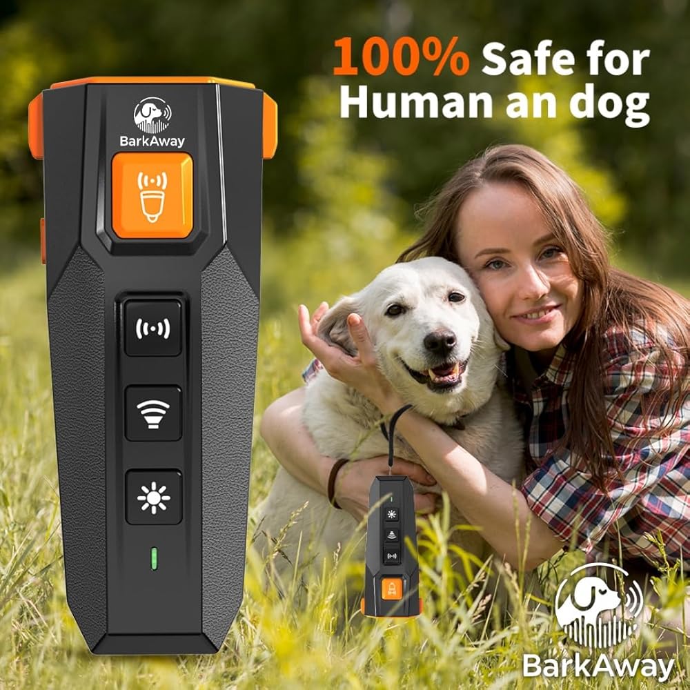 Gentle Ultrasonic Guidance: The BarkAway anti barking device for dogs produces a high-frequency sound that attracts your dog's attention and helps regulate excessive barking in a safe, non-invasive manner. The sound is imperceptible to humans, but it helps refocus your dog's attention during training without using force or physical strength.