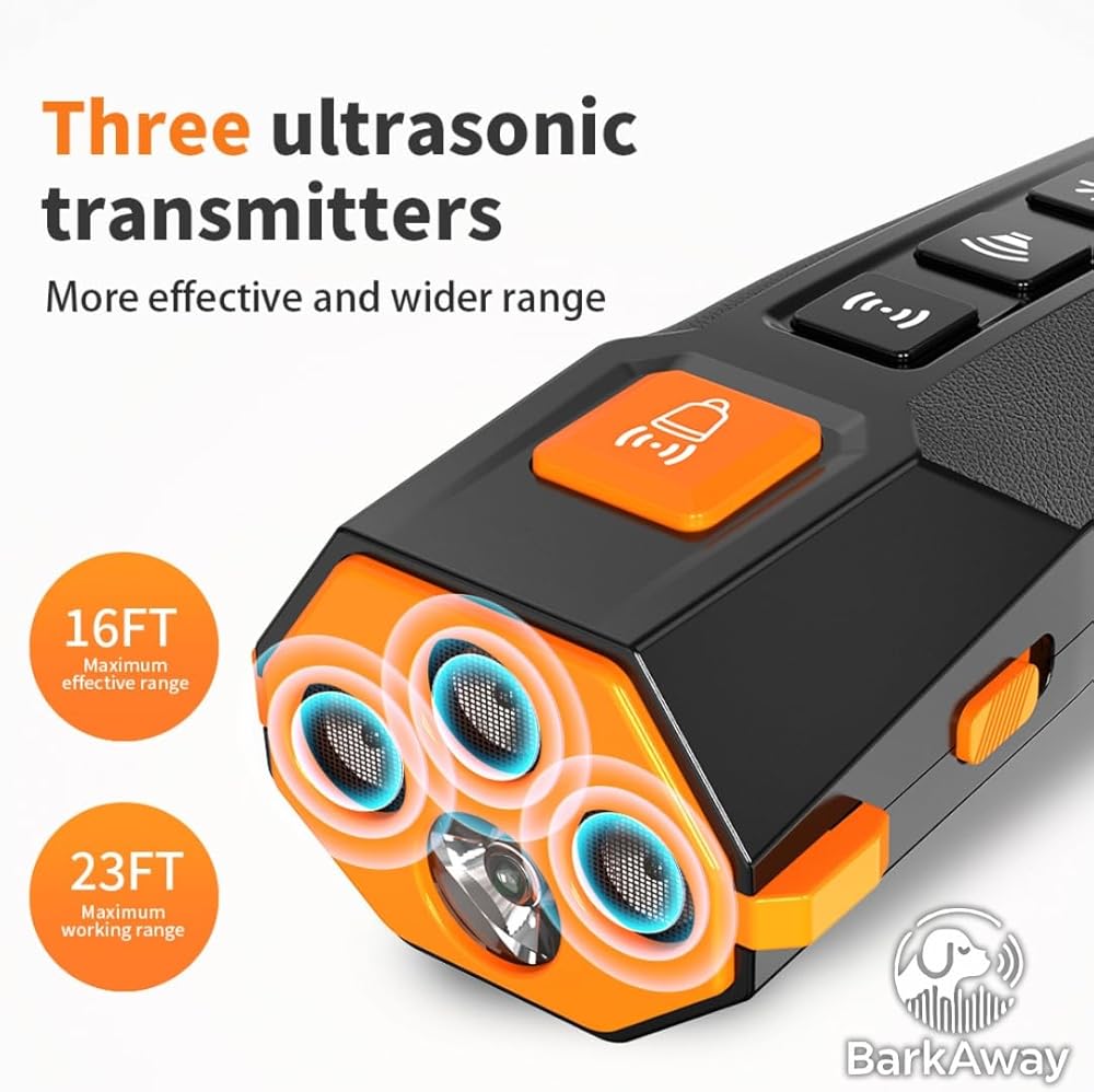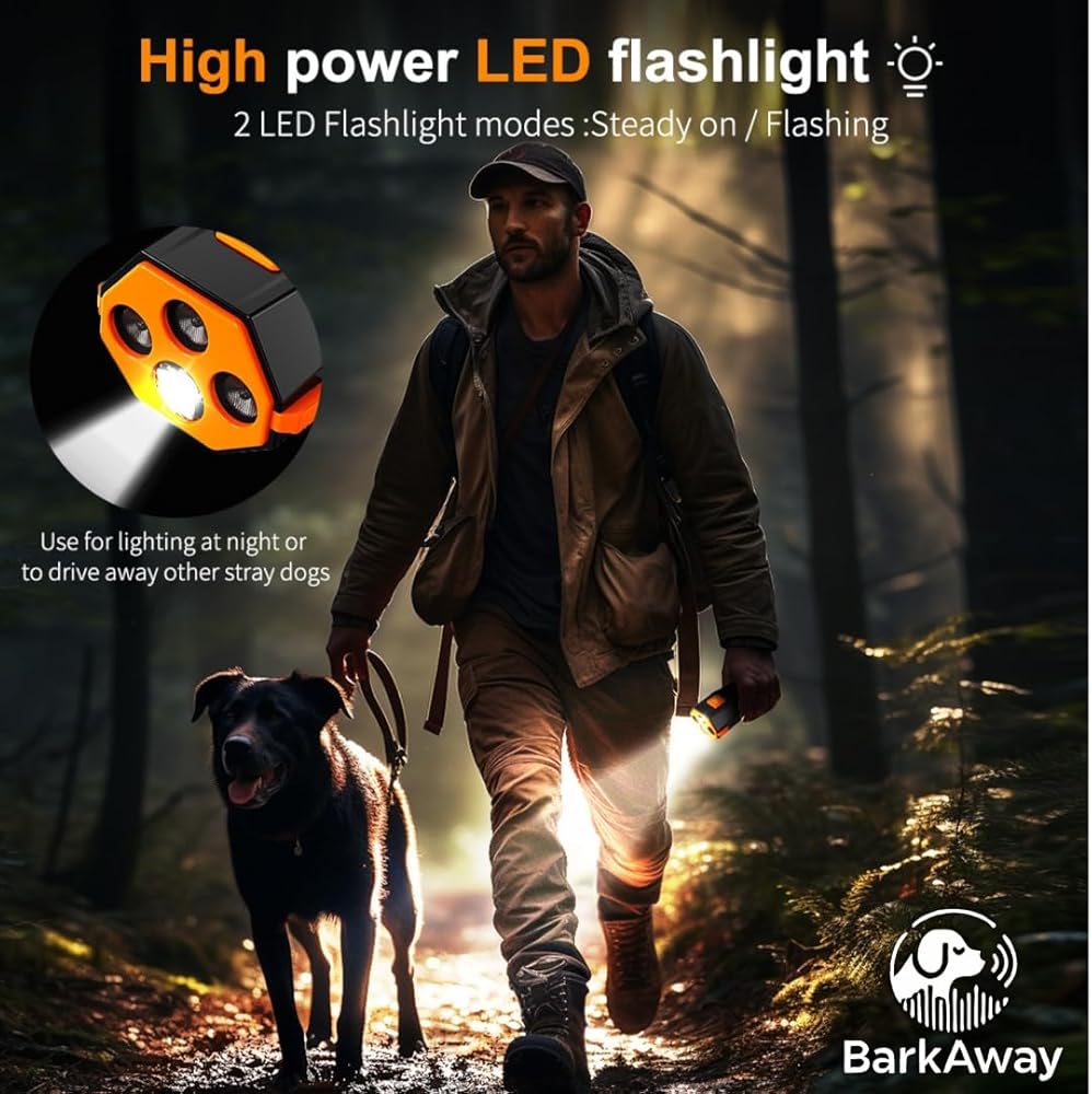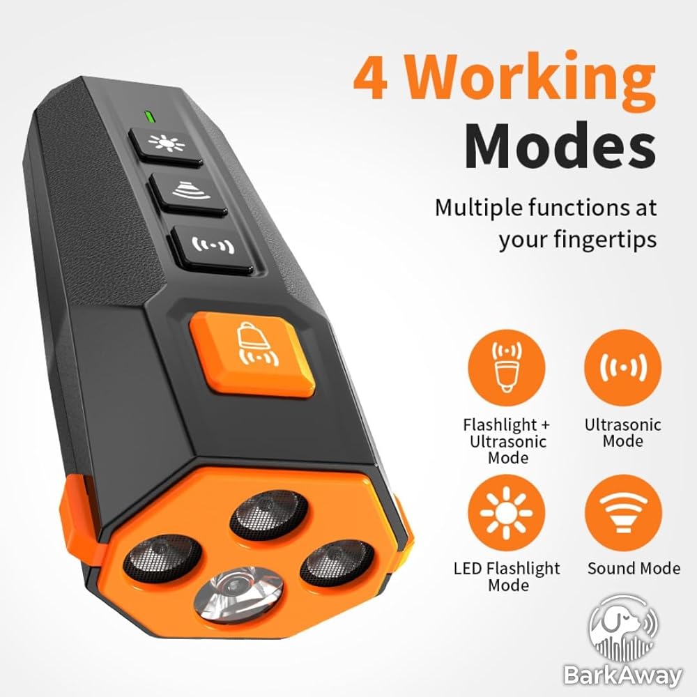 Versatile Training Modes with LED Flashight: These dog barking deterrent devices include four functioning modes, with 3 ultrasonic transmitters and an integrated LED flashlight for day or night usage. The range of settings provides more flexibility and wider range during training, depending on your dog's response and the surrounding environment.