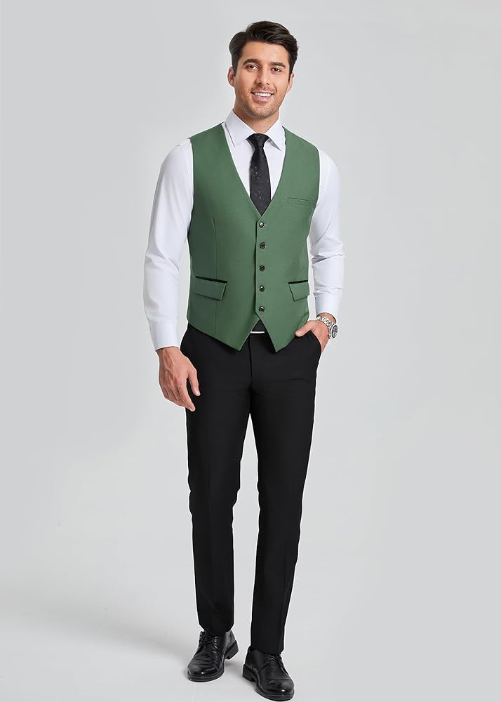 🔹【Fashion collocation】mens waistcoat can be matched with a necktie, bow tie, shirt, suit, tuxedo, coat, jacket, pants, and leather shoes, making you handsome and gentlemanly.