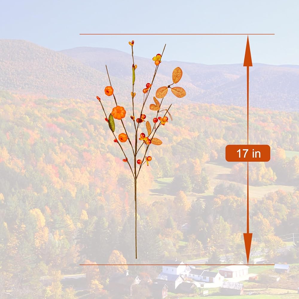 Lifelike & Stylish Design – Each 17-inch stem is carefully crafted with realistic orange berry clusters, adorable pumpkins, and natural-looking foliage for an elegant, organic touch. Ideal for enhancing your fall decor with a rustic yet refined vibe.