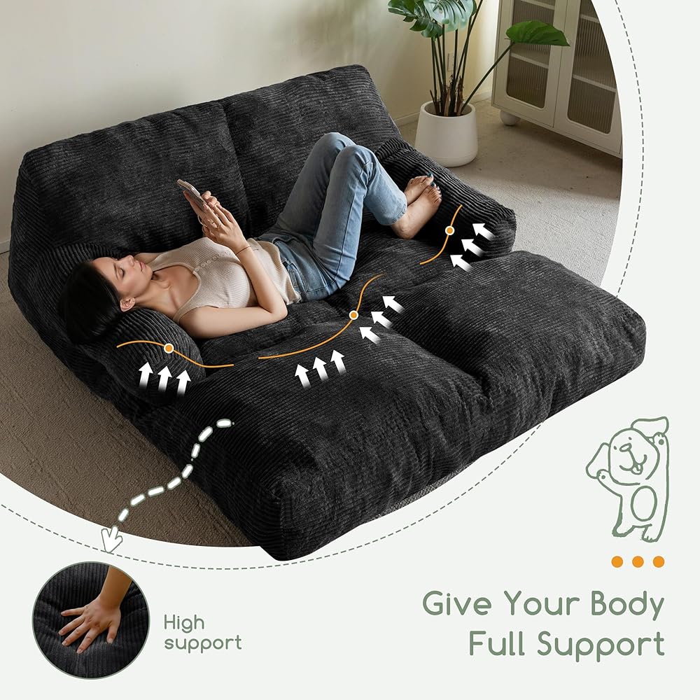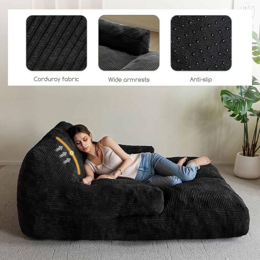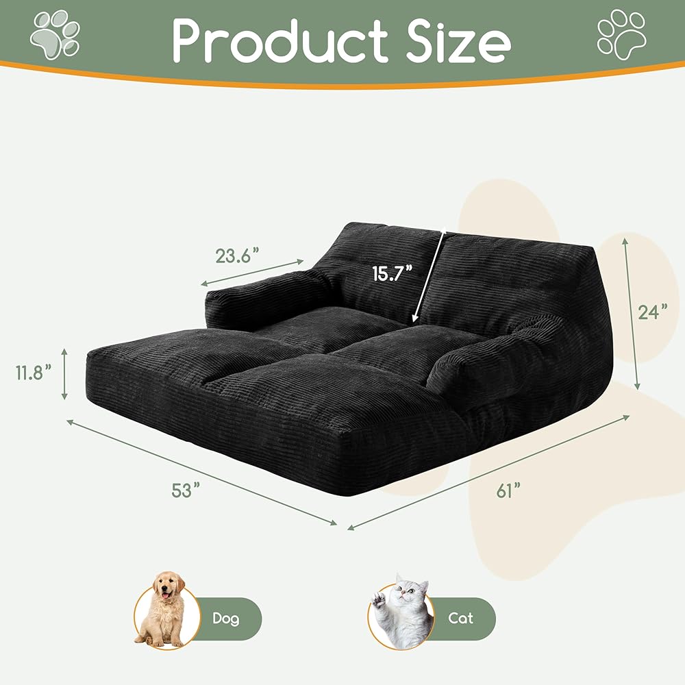 HIGOGOGO Giant Human Dog Sofa Bed, Extended Large Comfy Floor Couch for Pet Families, Corded Fabric Orthopedic Dog Bed for Human with Supportive Foam & Anti-Slip Bottom, XXXL Size, Black