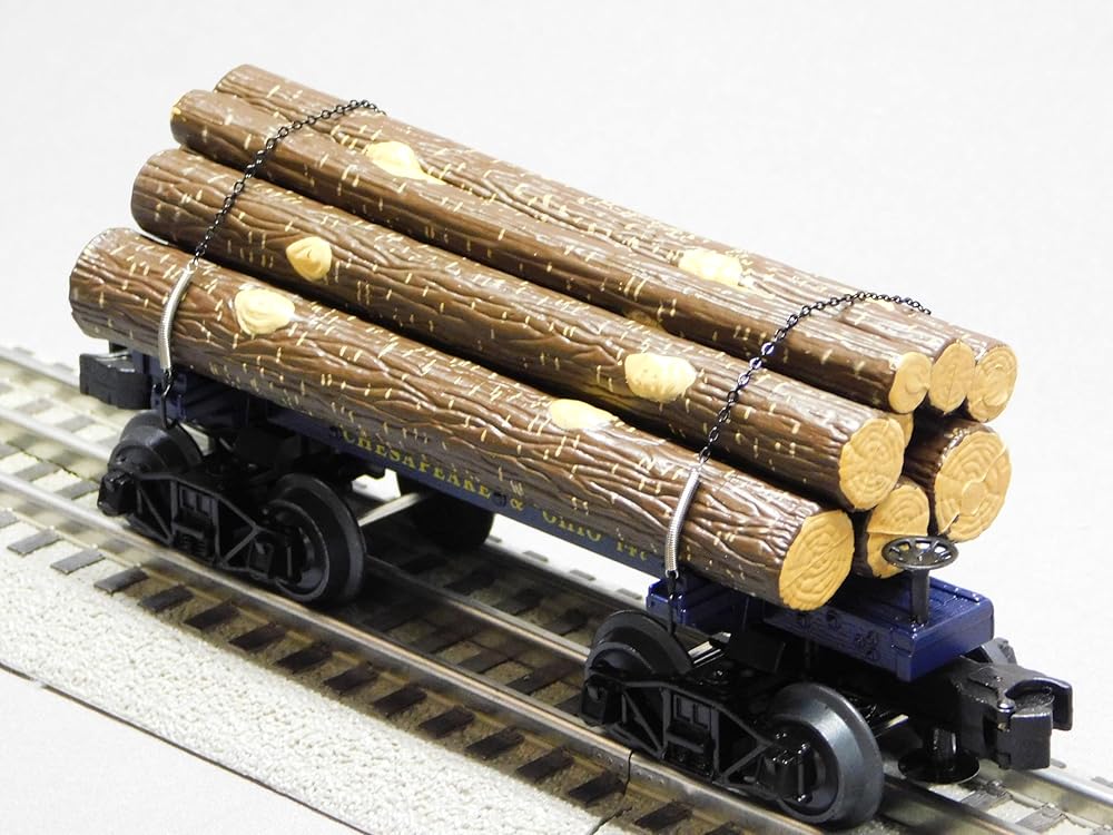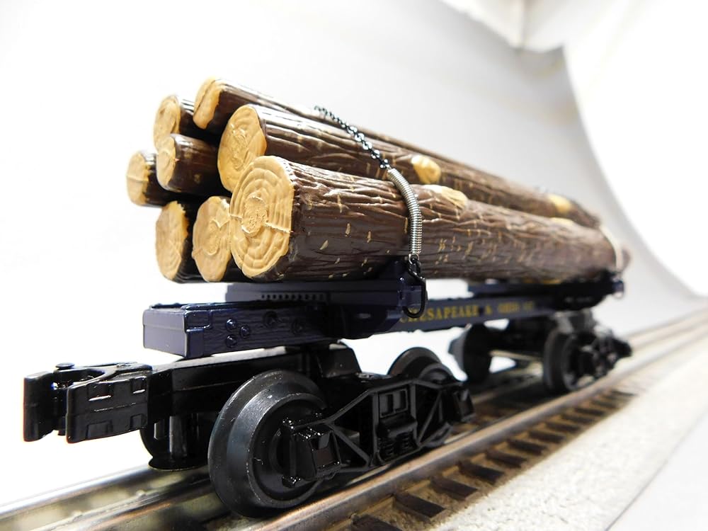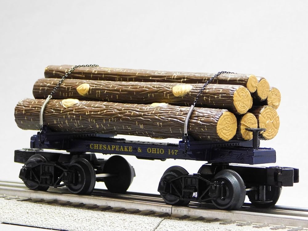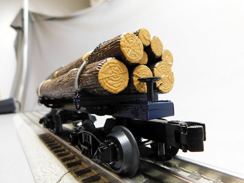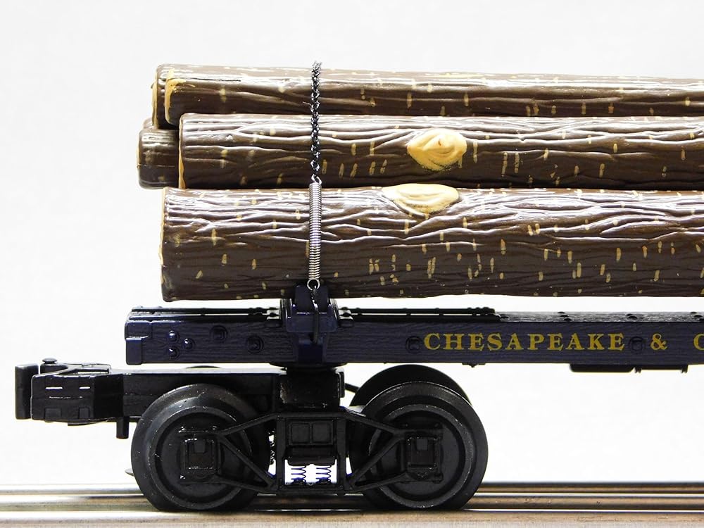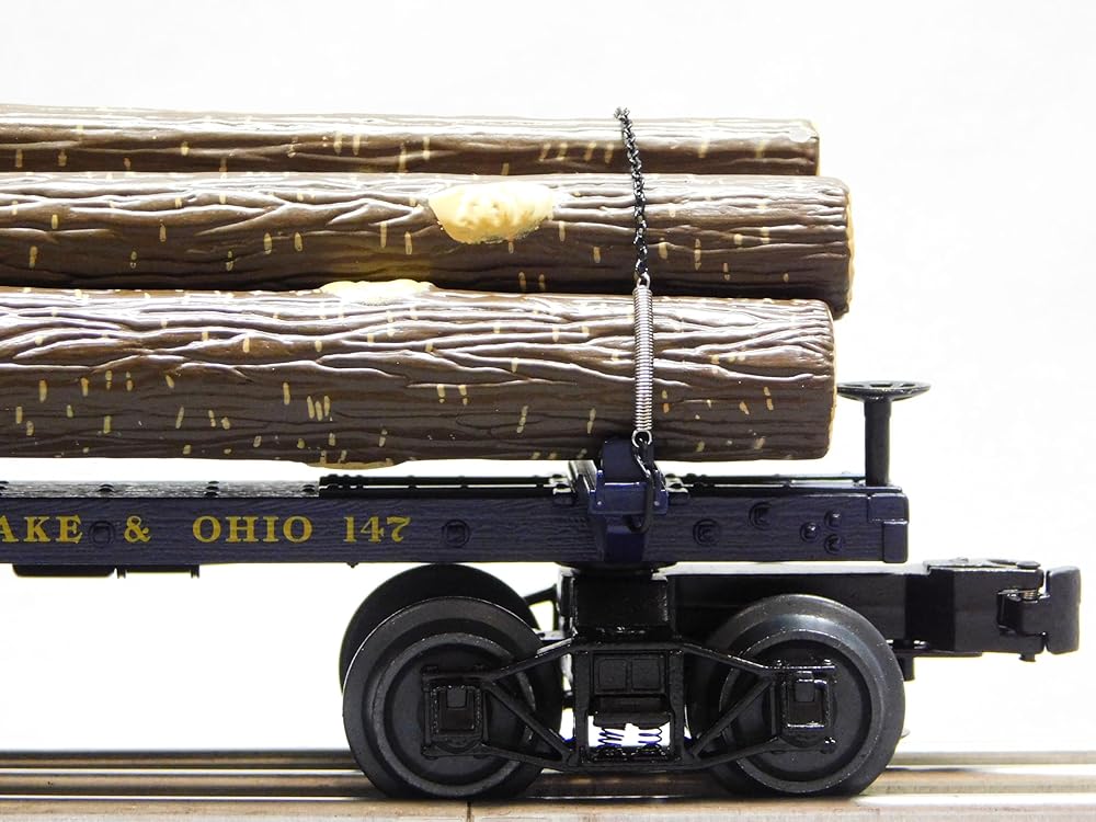 Metal Wheels and Axles Die-Cast 4-Wheel Trucks Operating Die-Cast Metal Couplers Colorful, Attractive Paint Schemes Fast-Angle Wheel Sets Needle-Point Axles Individual Car Log Load Log Chain Tie-Downs 1:48 Scale Dimensions