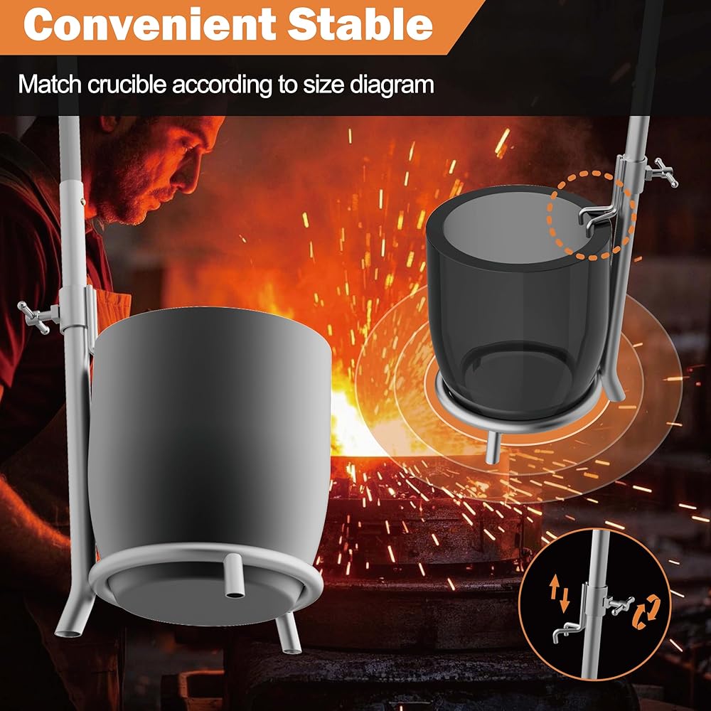 Durable Metal Construction: The handle stand is made of high-temperature-resistant metal, designed to withstand direct contact with a hot crucible for long-lasting use
