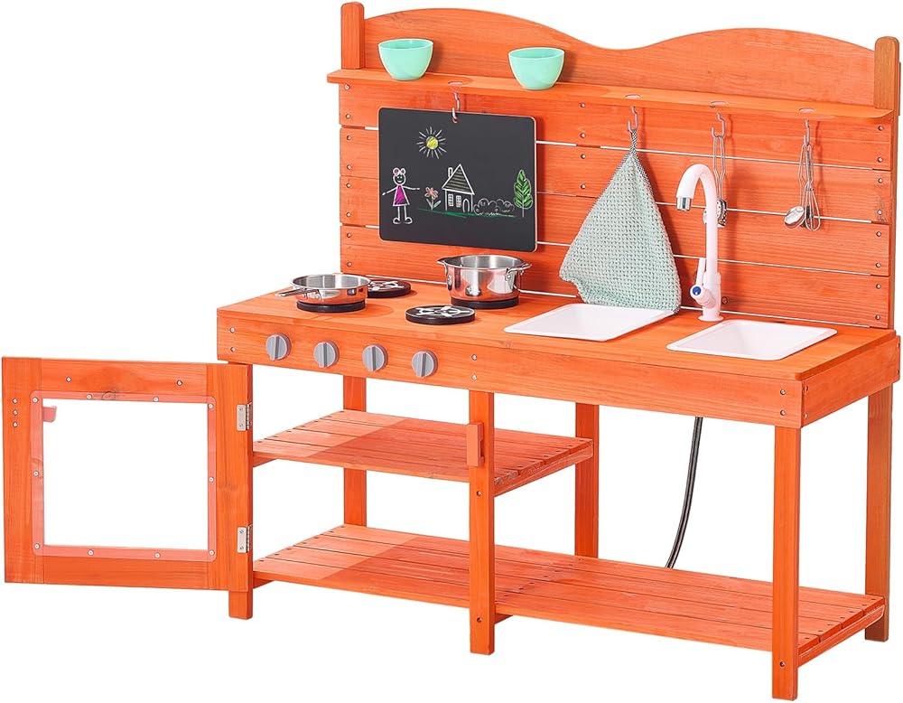 A Fun Developmental Gift: This pretend play outdoor kitchen is perfect for birthdays or holiday gifts for children, whether for boys or girls! With a 20.47-inch countertop height, kids can easily reach and organize their play items, helping improve hand-eye coordination. The spacious work area allows children to play with friends, explore the joys of nature outdoors, and improve collaboration and social skills