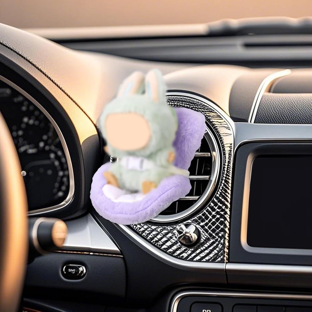 Doll Car Seat, Soft Furry Cushions Decorative Doll Carseat Chair with Clip Box and Safety Belt Perfect Air Vent and Desktop Ornament Accessories for Display(Purple)