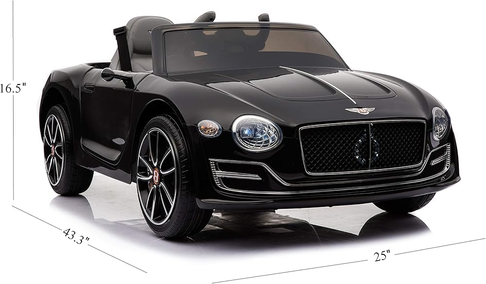 Officially Licensed Bentley EXP12 Ride on Car with Remote ControlExclusive luxury edition model with many upgraded features including light-up display, working headlights, opening scissor doors and parental remote control, giving the best driving experience as a real Bentley car! With its high-powered 2x motors, there is no other ride on car that would match this amazing machine!The fantastic latest upgraded ride on car also comes with realistic engine noises and MP3 plugin with volume control, USB interface and SD card slot. Recommended age for 3-6 years depending on child's size. Suitable for all ages with a maximum rider weight of 66lbs. Specifications:Overall dimension: 42 inch (L) x 22.75 inch (W) x 17.5 inch (H)Weight Capacity: 66 lbs.Product Weight: 32 lbs.Material: PP Plastic, MetalHigh Speed: 3.1 mphLow Speed: 1.25 mph Charge Time: 8-12 hrs Run Time: 1-2 hours Battery Type: 2 6V4AH Electric Motor: 12V Charger: Output DC 12V 500mA Recommended for ages: 3-6 years Assembly required (with instructions) Package Includes:Remote control12V Lead acid battery and chargerInstruction bookTool kitCare Instructions: Store indoors when not in use.ASTM and CPSIA certifiedWARNING: Battery posts, termils, and related accessories can expose you to chemicals including lead and lead compounds, which are known to the State of California to cause cancer and birth defects or other reproductive harm, and are toxic and corrosive. Wash hands after handling. For more information go to.P65Warnings.ca.gov.