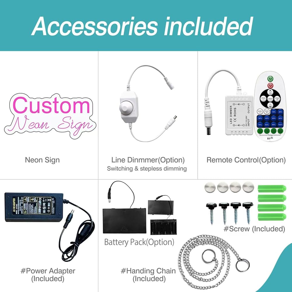 【Easy to Operation】The custom neon light comes with a complete set of mounting accessories and AC power adapter that simply plugs in. You can also purchase a battery pack for easy on-the-go use.