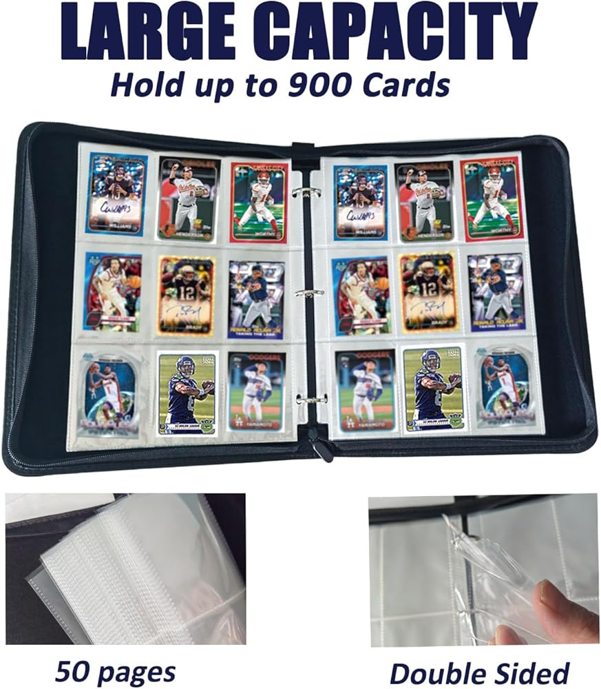 【Premium Durable Material】The top-loaded card collection binder is made of high-quality PU leather,which is waterproof and spill-resistant. This card folder binder will protect your cherished cards from scrapes and keep them in mint condition.