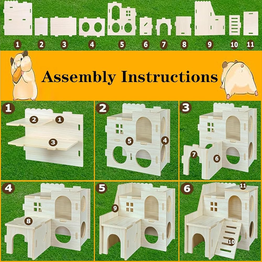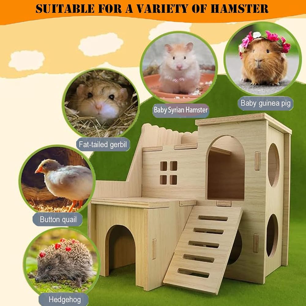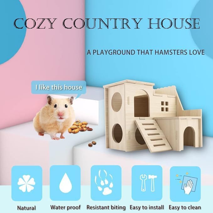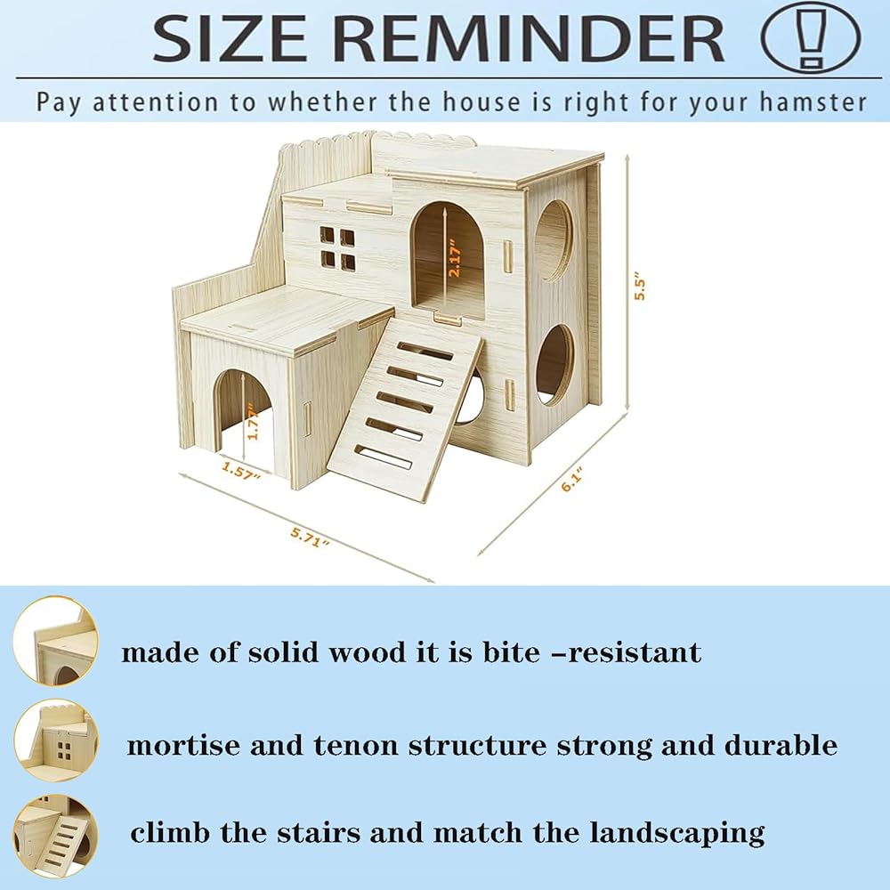 【Practical Design】The small wooden house adopts a double-decker design with a ladder, provide a paradise for small pets to hide, store food, climb and play. Satisfies their playful instincts and helps reduce their loneliness and boredom,Provide a sufficient sense of security.