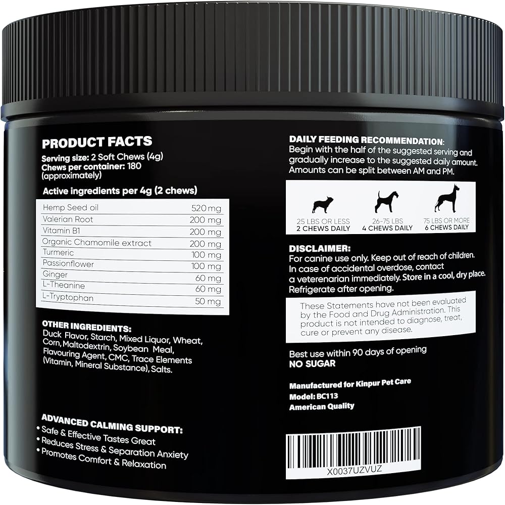 Trustworthy Quality: Our calming treats for dogs are sourced and formulated with the highest safety standards in mind. Ensuring premium quality, these chews offer a reliable pet supplement for various stress-related issues.