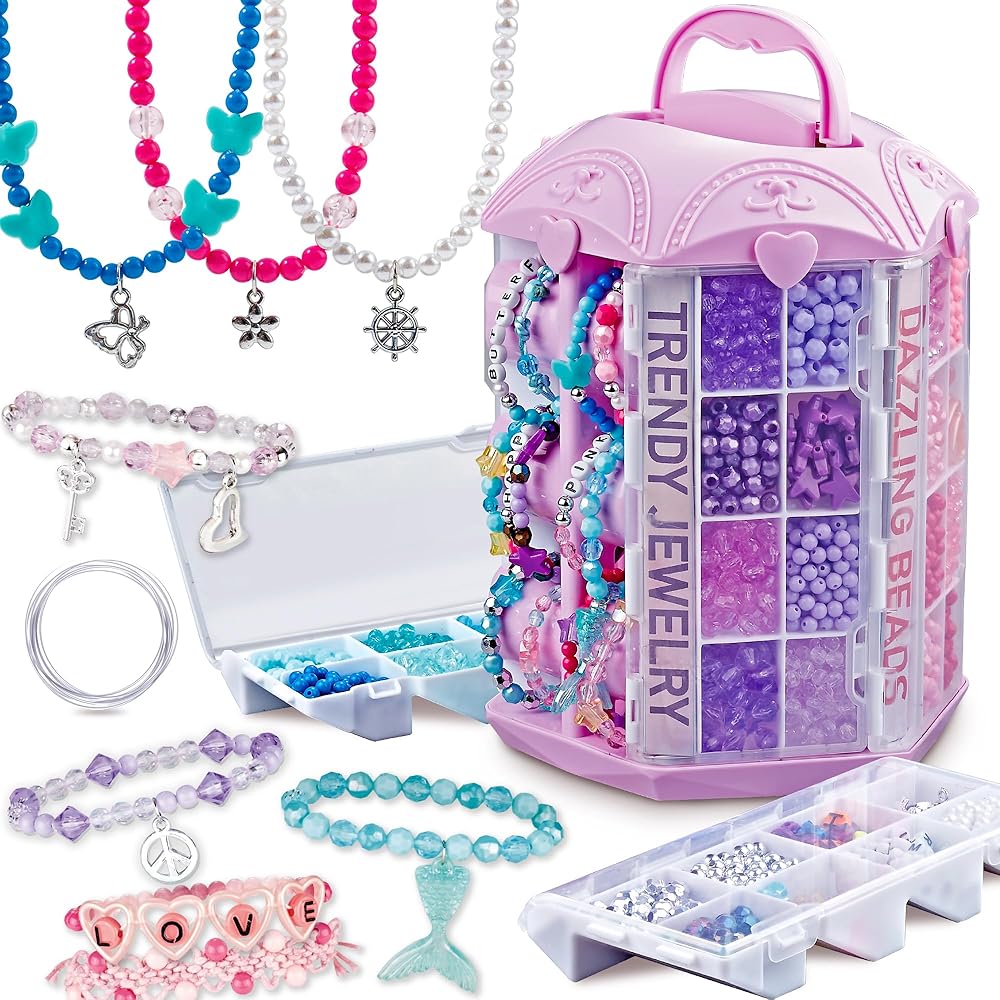 [Spark Her Imagination]: Designed for girls who love arts & crafts, this beads for bracelets set packs fun and hands-on learning into one perfect package – making it the ideal birthday surprise, big Christmas gift, or just-because present. She'll love designing her own unique, wearable jewelry during playdates, family vacations, summer camp adventures, rainy days, or holiday downtime. Give the gift of confidence, self-expression! Plus, build friendships while making and trading bracelets!