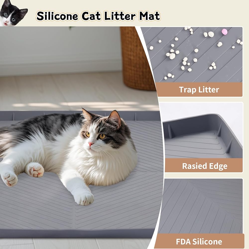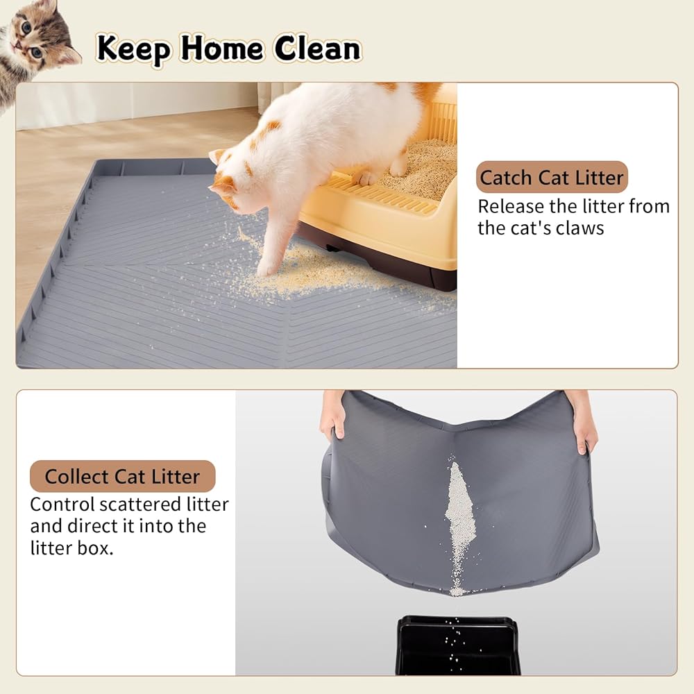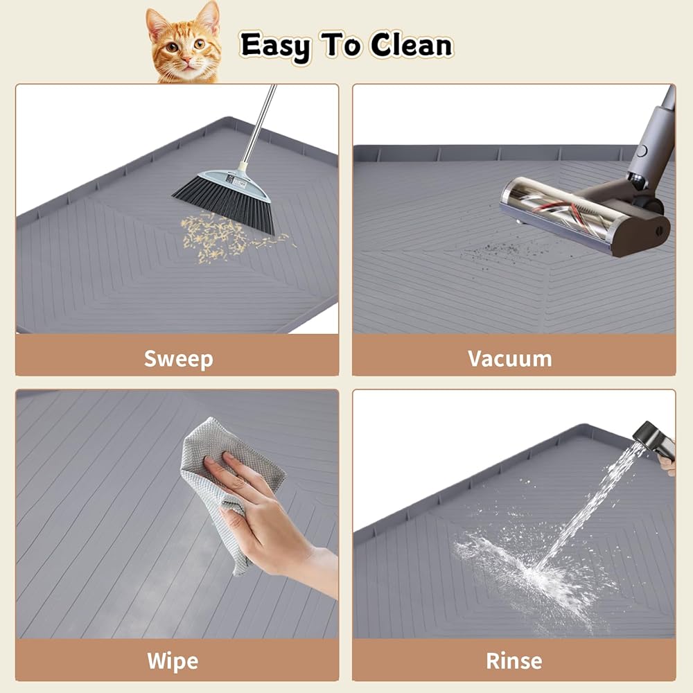 SUPERIOR PROTECTION: Our litter mats have higher edges than others to prevent water or urine spills. The waterproof silicone mats do not absorb odors and prevent urine from seeping onto your floor. Total protection for your floors