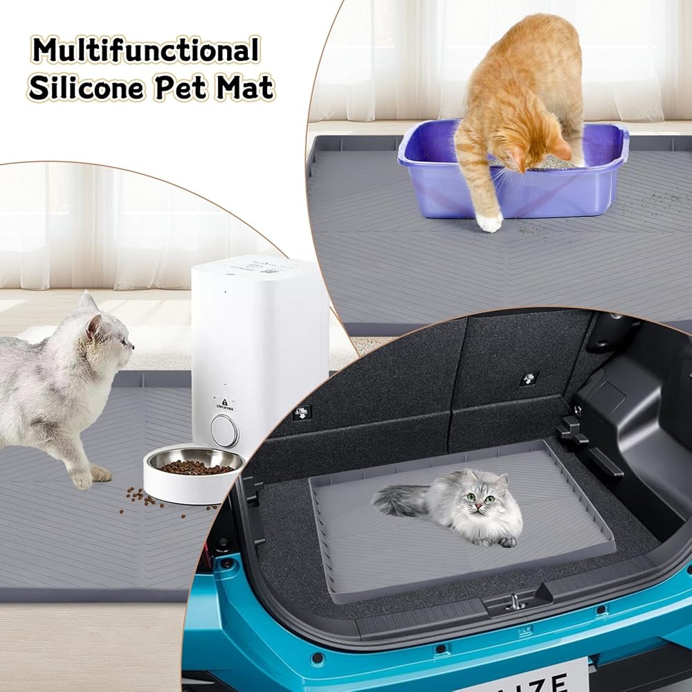 MULTIFUNCTIONAL USE: The Silicone mat is not only suitable for use as cat litter mats, but can also be used as feeding mats and car seat mats, making it a versatile accessory for pets.