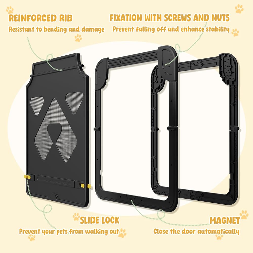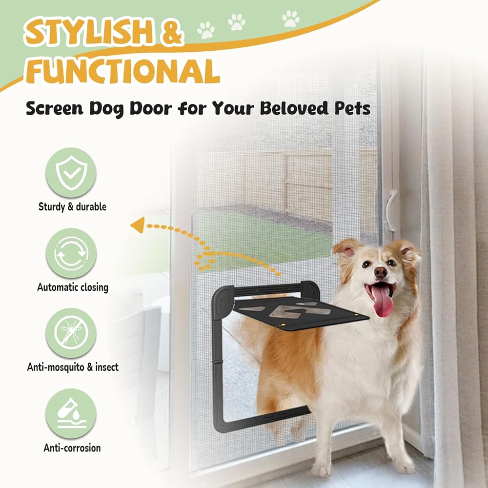 Sturdy Construction & Anti-Scratch: Crafted from high-quality plastic and mesh, our screen dog door is built to endure daily wear and outdoor elements, ensuring long-lasting performance and durability through all seasons without warping or losing shape.