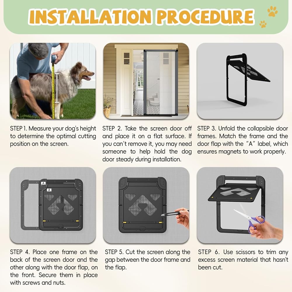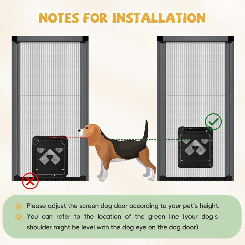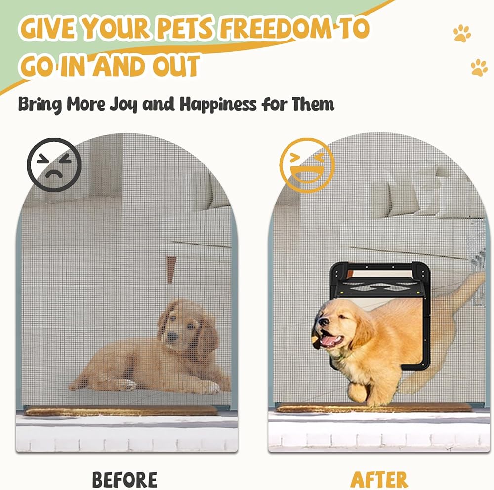 Easy Installation: Installing this screen dog door is quick and straightforward, with no professional help required. You can easily set it up yourself, giving your dog easy access to the outdoors without compromising home security.