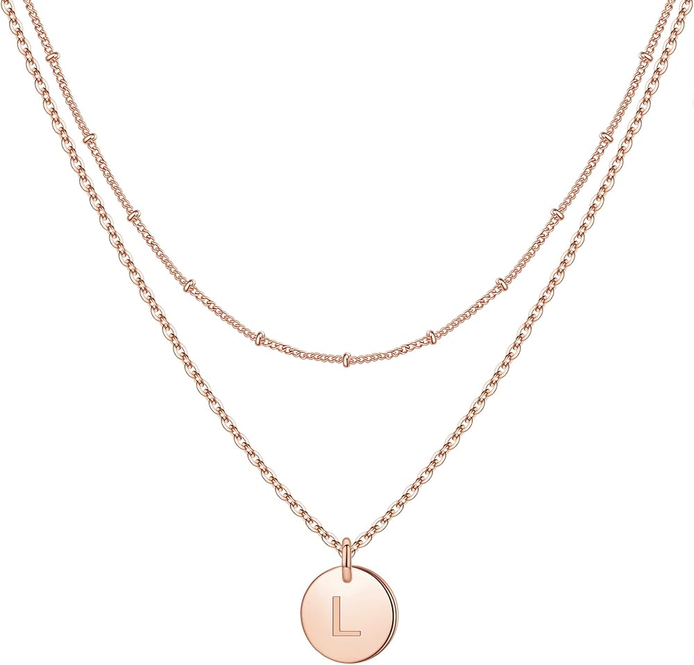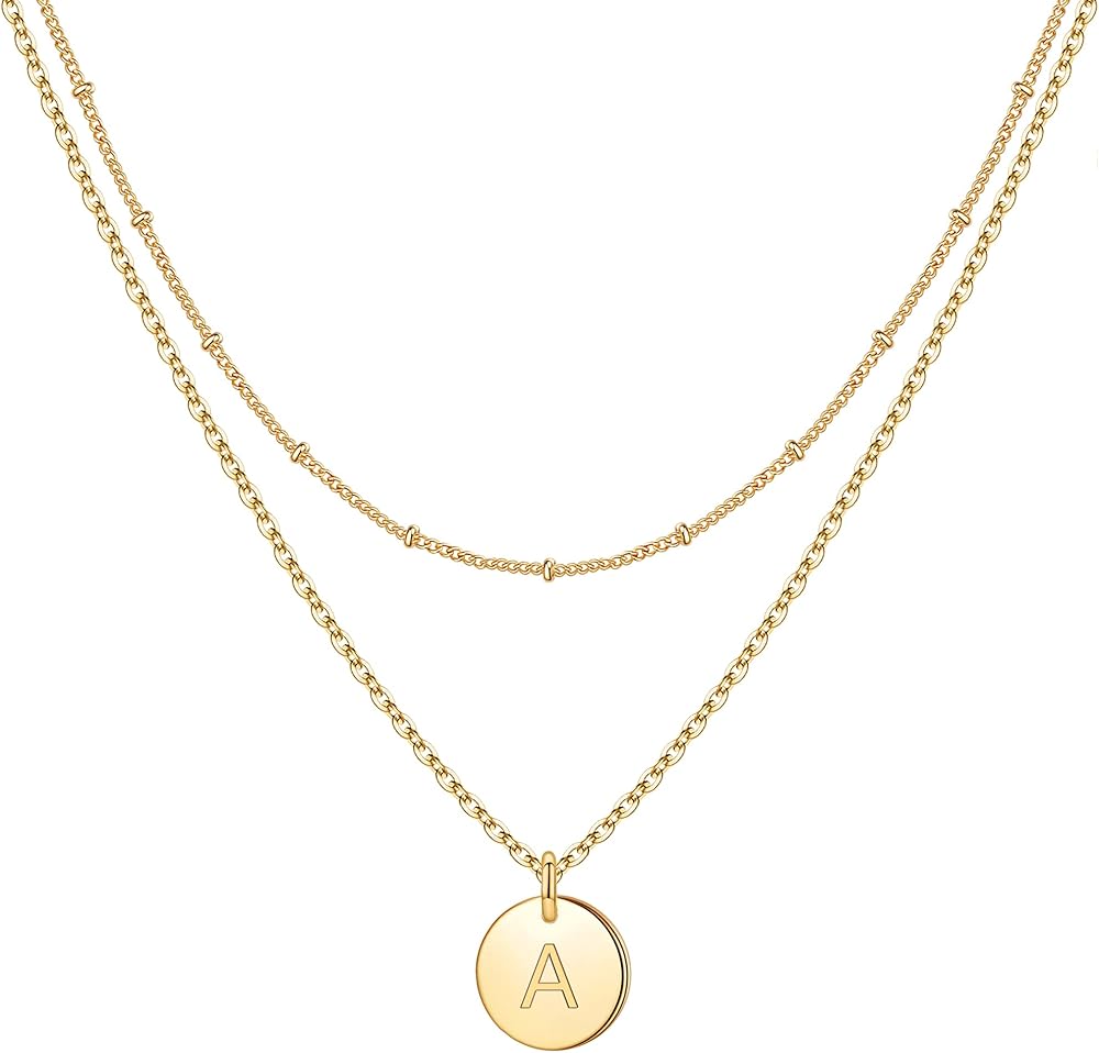 ✨Tiny Layered Gold Disc Initial Necklaces for Women Teen Girls