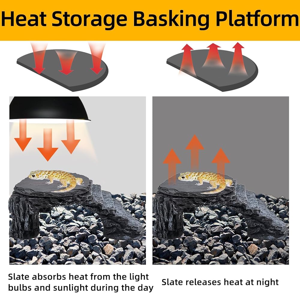 【Heat Storage Slate Stone】Slate stone are added to the top of the turtle basking platform to absorb heat from the sun bulbs and sunlight during the day and release heat at night to keep the interior warm of aquarium and keep your reptiles warm.