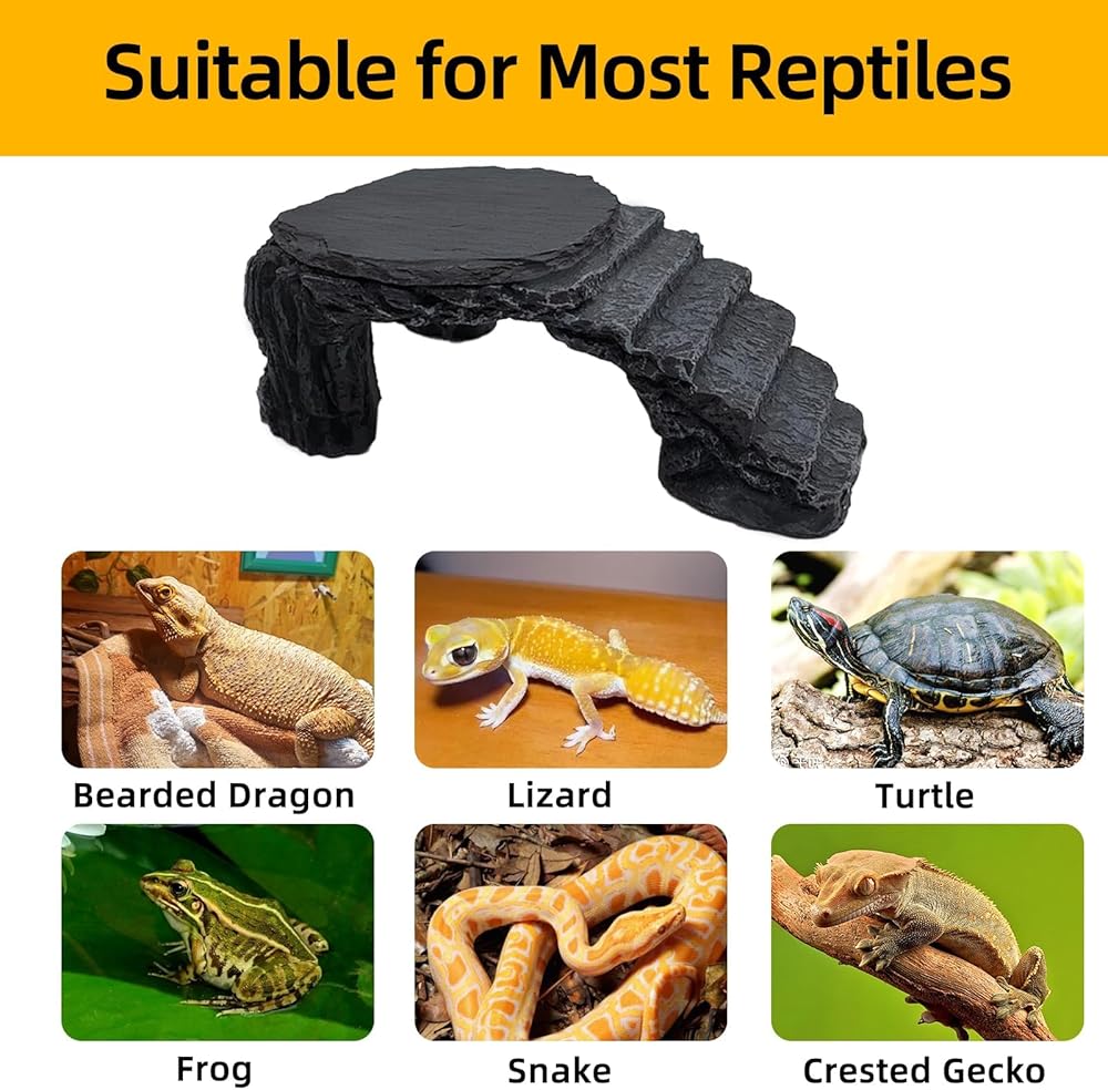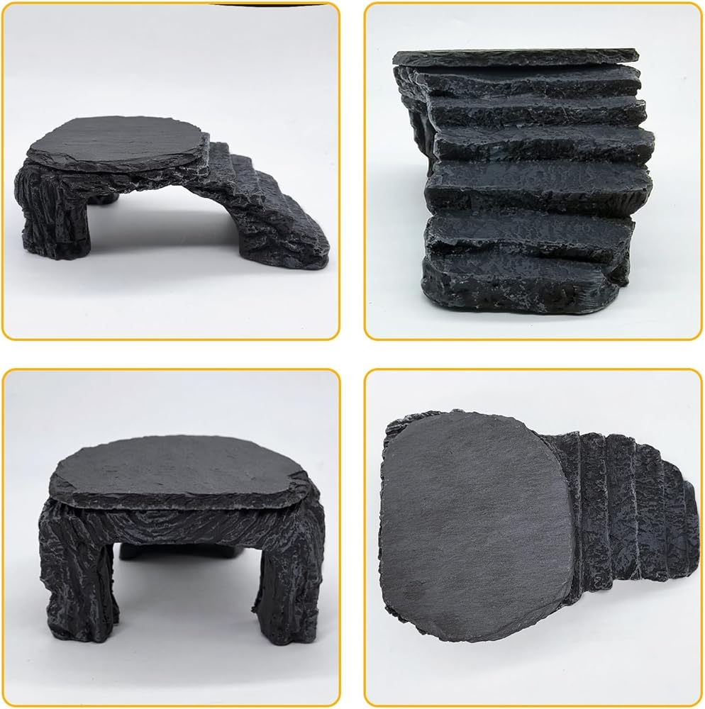 【Multi-functional】The reptile hideout at the top can be used as a basking platform, and the cave with ramp below can be used for hiding, climbing and playing, as well as for aquarium decoration.