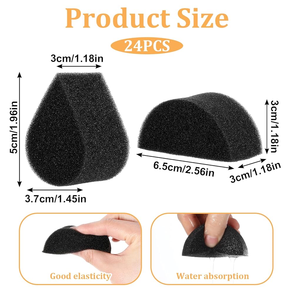Versatile Shapes: Package include 24 Pcs black body painting sponges with 2 shapes, oval and semicircular, The variety allows for both large area coverage and fine detail work, making it perfect for face and body painting