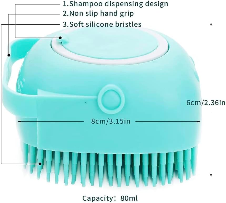 Soft Silicone Material our pet dog bath brush comb is made of quality food grade silicone, which has the advantage of High-temperature proof, easy to clean, and quick-drying. Our silicone rubber bathing brush can bring good interaction for you and your dog or cat to massage the skin, remove the dust, loosen shedding hair. Comfortable Massage Feeling with shampoo dispensing design, the dog massage brush not only can provide a quick and thorough washing of your pets but also massage the skin to improve blood circulation. This pet brush can give your pet a very comfortable bath experience. Portable Puppy Brus Lightweight design, the weight of this dog cat cleaning grooming brush is only 85g, and the size is just one palm to fully grasp it. Even if you fill the container with shampoo, you will not feel the slightest pressure, so you can better help your dog. Convenient to use the special non slip hand grip design of this dog cat shower hair removal comb offers you a comfortable grasp when taking a shower for your dog. Just squeeze slightly and the shampoo can easily come out, which is pretty convenient and save more pet shampoo. Quick dry and save space a hang hole design allows the multi-functional dog grooming brush to be easily hanged to dry after use, saves space. However, please pour out the excess water and show gel to avoid the soap leak out.