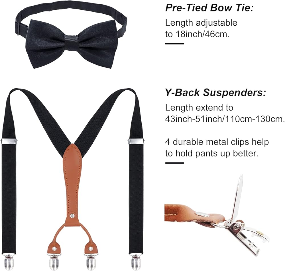 Different from others, the Y suspenders of this costume set have 4 durable metal clips which help to hold your pants up better, no slipping off.