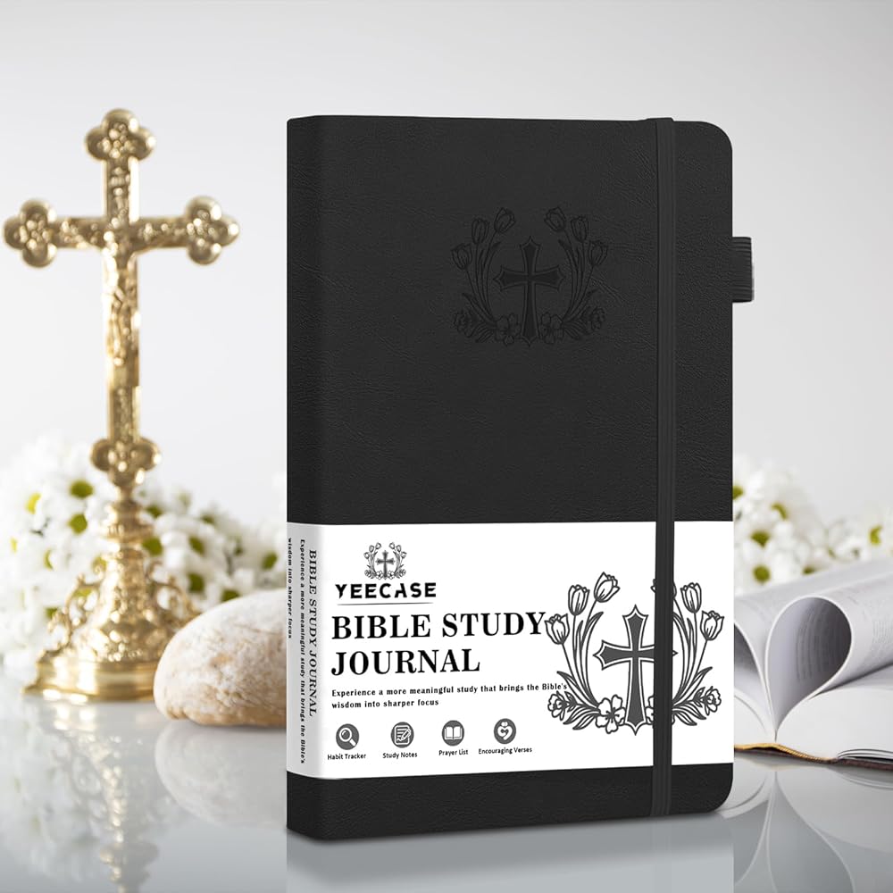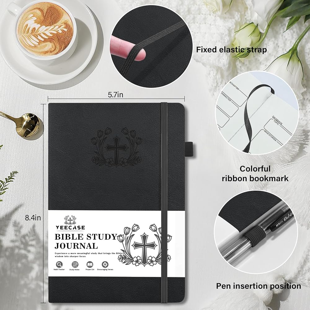 Bible Study Journal, Church Bible Prayer Journal, Study Scripture Notebook for Note Taking Reflection, Based Religious Gifts and Bible Study Supplies (Black)