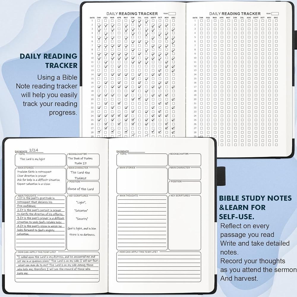 Four Organized Sections: This Bible study journal is carefully divided into four meaningful sections: habit tracking, study notes. Plus, it includes room for a prayer list and favorite verses, keeping everything you need in one beautiful, organized place.