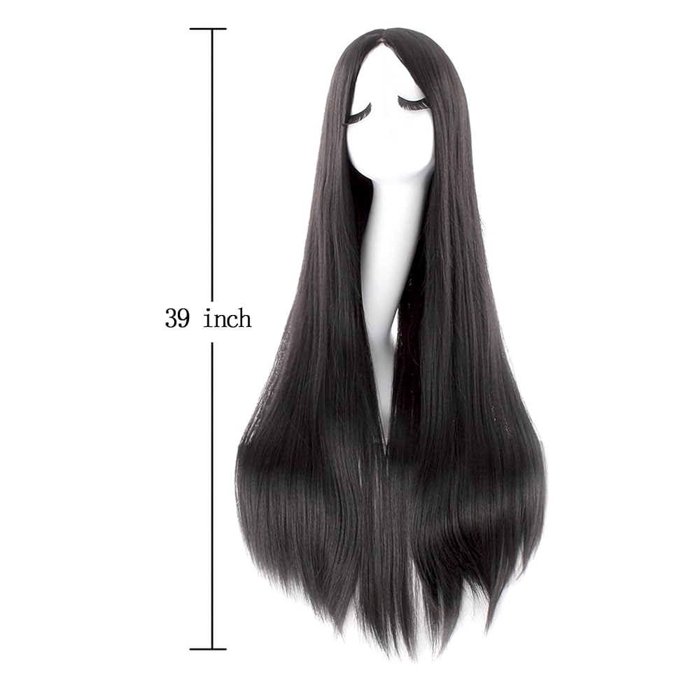MapofBeauty 40 Inch/ 100 cm Carve Long Straight Cosplay Wig Anime Costume Party Wig (Black)