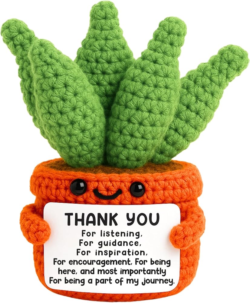 Handmade with Love: Enjoy the charm of this positive crochet aloe vera, crafted from premium yarn for durability. At about 4.33 x 2.36 inches, this mini crochet companion is perfect to carry with you or brighten any desk with its warm presence.