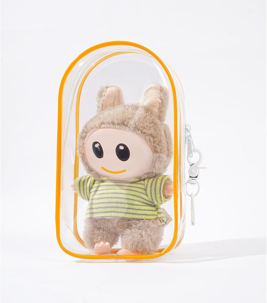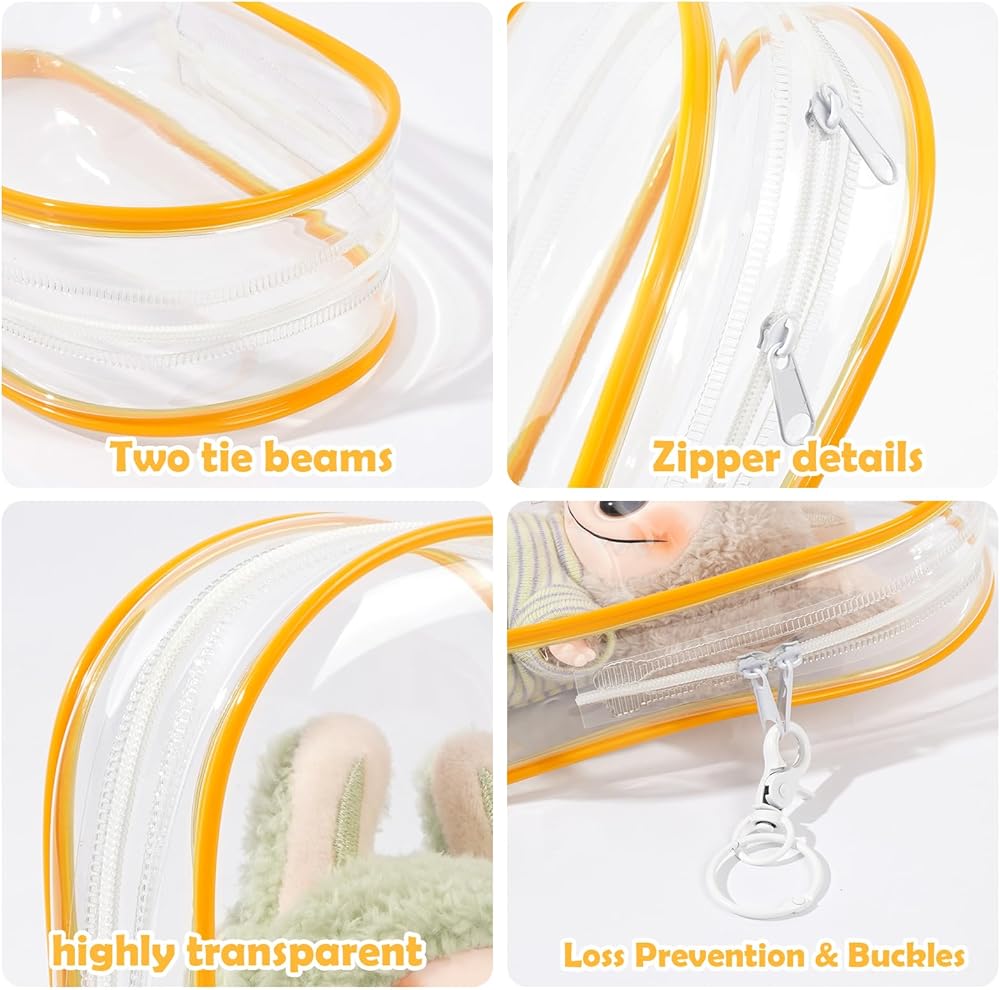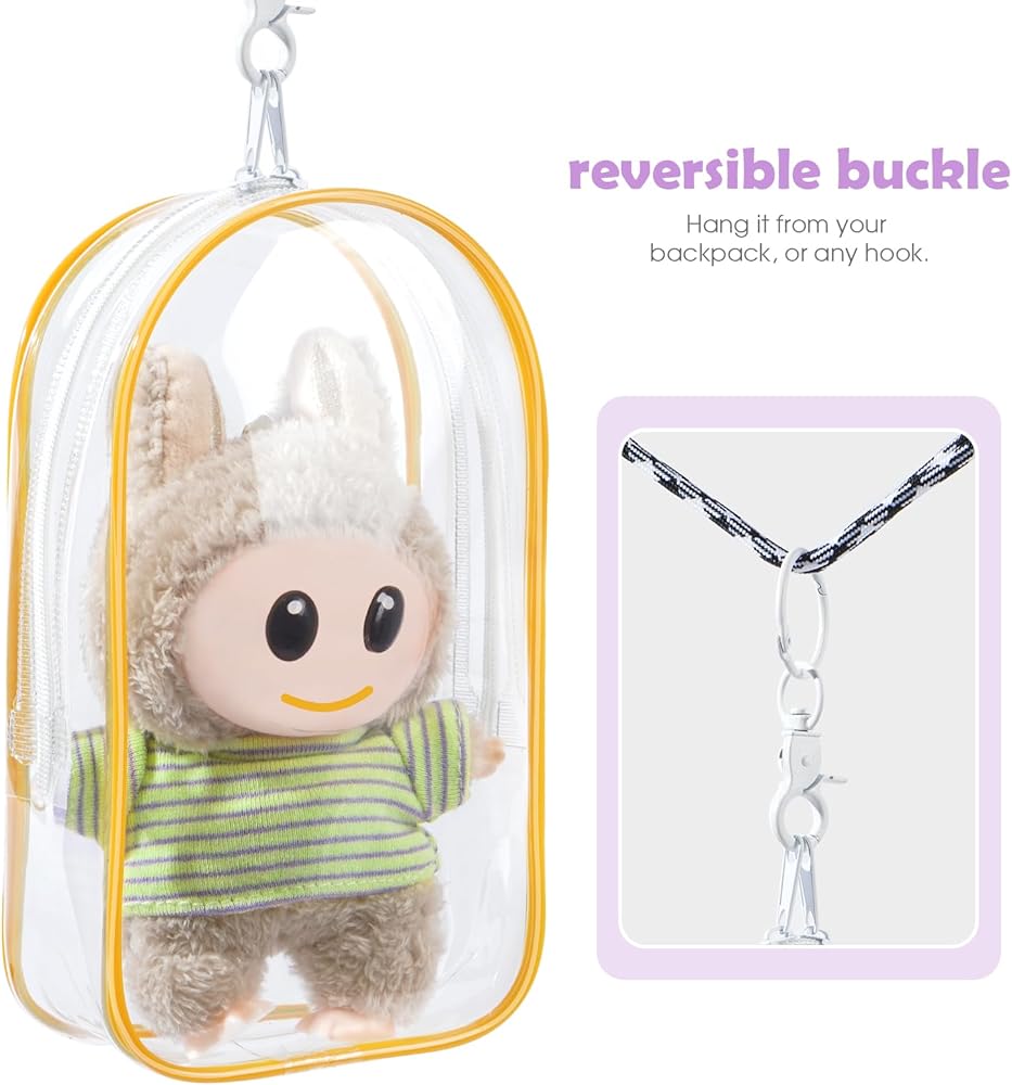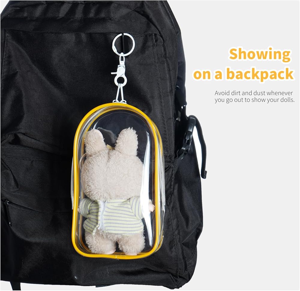 Clear Figure Display Bag with Keychain for Doll, Positive Doll Storage Bag, Pouch Keychain Charms for Collectibles (with Zipper- Waterproof) Building Block Storage Bag,7.4 * 4.2 inch