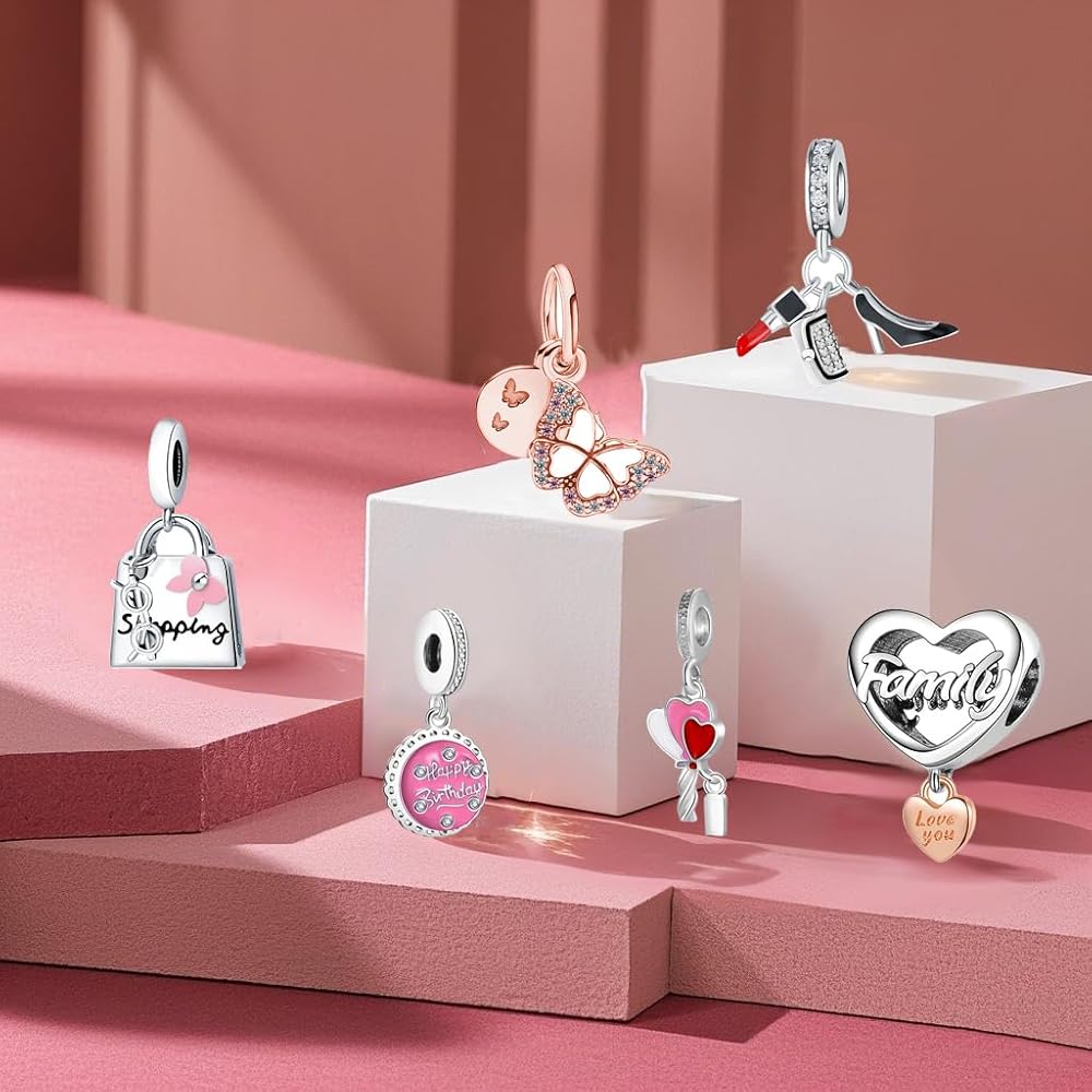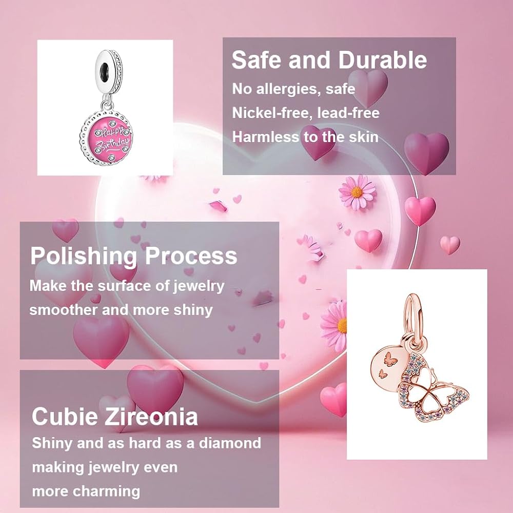 Design your bracelet or necklace: These charms match your necklace or bracelet, with hole diameter is 4.8-5.0mm which is suitable for most bracelets or necklaces, snake chain bracelets, troll, Biagi, Chamilia European or Italian bracelets, etc. Make a unique bracelet for yourself or a unique necklace as a pendant to make you stand out! Perfect Gift For Women:The special charms set is a good choice as a gift in various occasions.Birthday Gift,Christmas Gift, Mother's Day Gift,Valentine's Day Gift,Party Favors,Thanksgiving Gift,Memorial Day Gift,Graduation Gift ect, Give her exquisite and beautiful charms, and she will fall in love with them. For Sister,Girlfriend,Mom,Wife, Family,Grandma,Aunt,Friend and Yourself! Charms Care Warm Tips:Limit contact with make-up, creams, perfume and lotions. Avoid silver dips, polishing liquids, ultrasonic cleaning and strong chemicals. Do not wear in the shower, swimming pool or hot tub. Store clean in a dry airtight container, like a ziplock bag. DIY Charms Craftsmanship: We have a professional design team, fine grinding tools, and perform cutting, polishing, welding, oxidation, crystal inlay, polishing, etc. Each charm is manually selected, and you can place them in different positions to match unique bracelets or necklaces!
