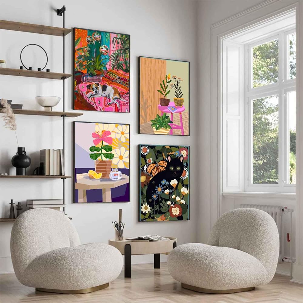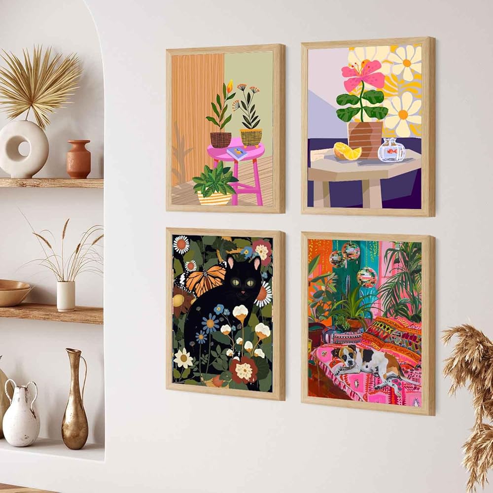 4 Pack Paint by Numbers Kit for Adults, Cat Flowers DIY Adult Paint by Number Kits Pack Beginners Easy Acrylic On Canvas for Painting Home Decor Creative Wall Art 24x30 inches (mm-25)