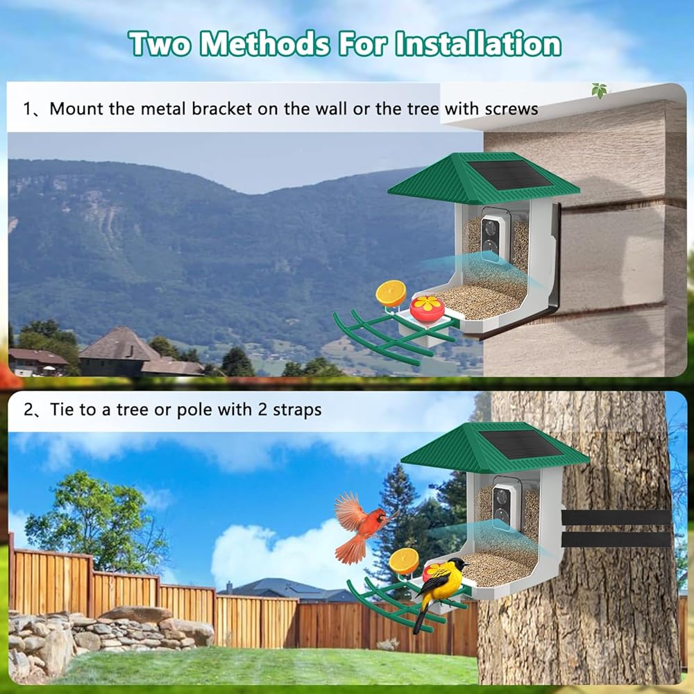 【Bird-friendly Design &An Ideal Gift】The birdhouse camera is professionally designed as a beautiful home for your backyard birds. IP66 weatherproof and firm stand make it a solid house for buddies of birds. Just enjoy your upgraded bird-watching journey on our phone app. Are you still looking for a gift for your dad/mom's birthday? this feeder is perfect for attracting a variety of species and makes an excellent gift for bird lovers of all ages.