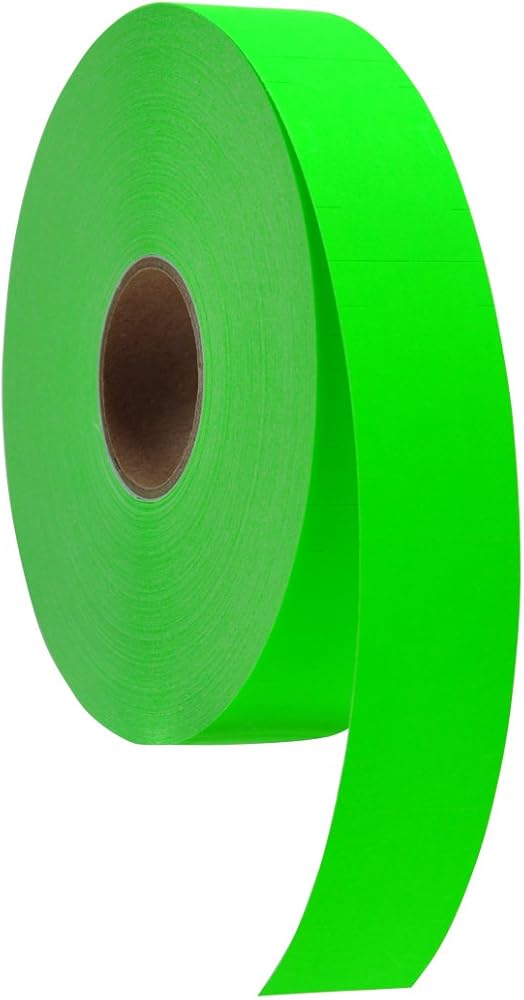 Fluorescent Green Pricing Labels to fit Monarch 1155, 1156, and 1170 Pricers measure 1 1/4" (32mm) wide x 3/4" (19mm) tall and come with general purpose adhesive suitable for most items. They have tamper proof slits to deter price switching. Pricing labels come packaged with 1000 labels on each roll.
