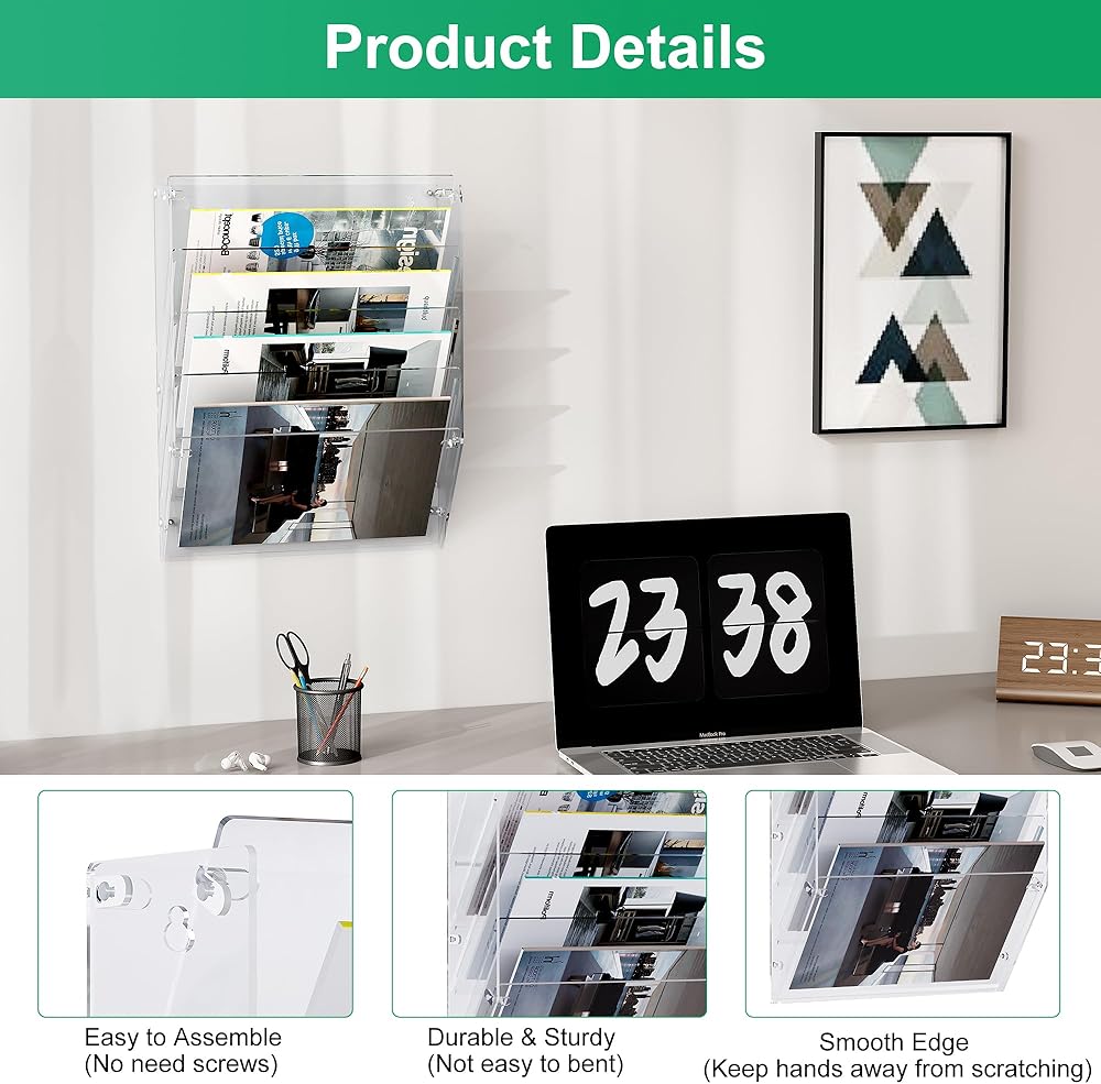 Easy Installation: Unlike traditional styles, our acrylic file holder layers are installed with plastic snaps and do not require any screws for assembly. Simply snap the layers into the corresponding holes and you're done, easy and quick