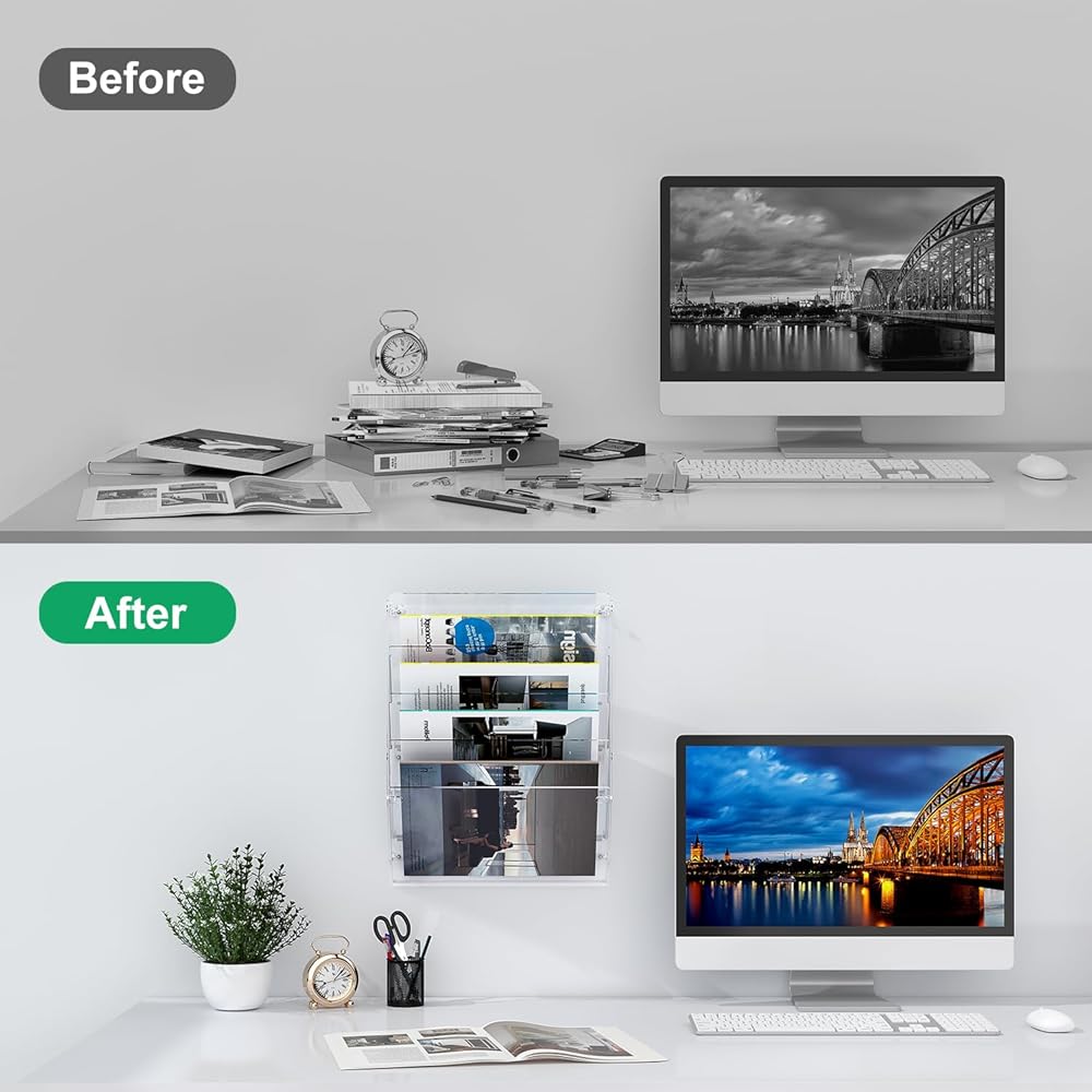 It's time for an upgrade: Are you tired of those metal wall organizers? The same old styles getting boring? It's time to looking for a wall organizer that will catch your eyes, to add something different to your office organization, our acrylic wall organizer is made of premium acrylic material, clear and bright layers instantly make you feel the different from the usual wire mesh organizers