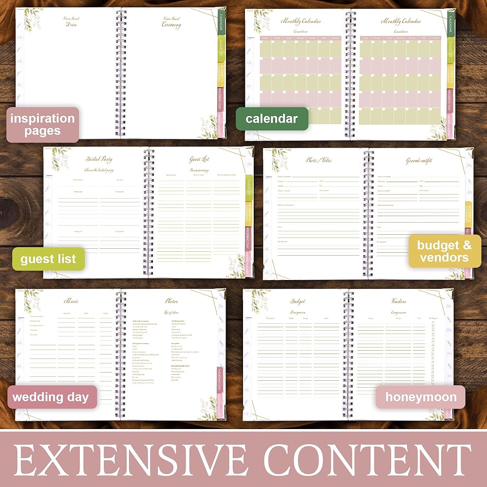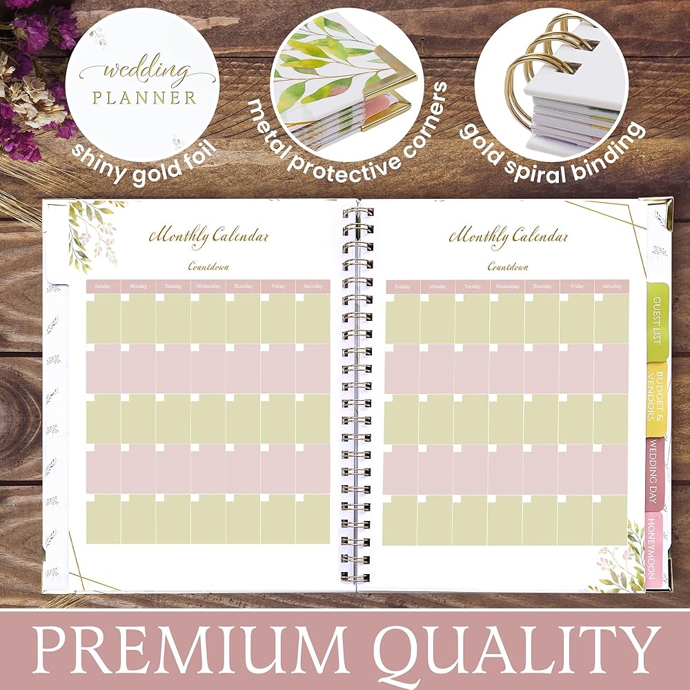 Introducing the Faaviza Wedding Planner Binder, the ultimate companion for brides-to-be embarking on the beautiful journey of wedding planning. Designed with elegance and practicality, our wedding planners and organizers for bride ensure every detail of your special day is meticulously curated. Whether you are a professional wedding planner or organizing your own celebration, our product provides a comprehensive tool to streamline the process. This exquisite wedding binder organizer boasts a stunning floral design, making it a stylish addition to your planning tools. The Faaviza Wedding Planner Book and Organizer is not just a functional item but a keepsake that captures the essence of your wedding planning journey. Its elegant floral cover conceals a world of organizational tools inside. The Faaviza Wedding Planner is equipped with a detailed Countdown Calendar, helping you manage your timeline efficiently. Stay on top of every task with sections dedicated to budgeting, guest lists, vendor contacts, and more. Our wedding planning book and organizer ensures that nothing is overlooked, giving you peace of mind and confidence as you approach your big day. Portability is key, and our wedding planner binder is designed to be lightweight and easy to carry. Its compact size allows you to bring it wherever you go, ensuring that you can jot down ideas and appointments anytime, anywhere. Despite its portability, this wedding notebook does not compromise on functionality, offering ample space for notes and plans. Perfect as engagement gifts for couples newly engaged, or as engagement gifts for her, the Faaviza Wedding Planner Binder is a thoughtful present that will be cherished for years to come. It serves as a bride book that holds all the dreams and plans leading up to one of the most important days of her life.