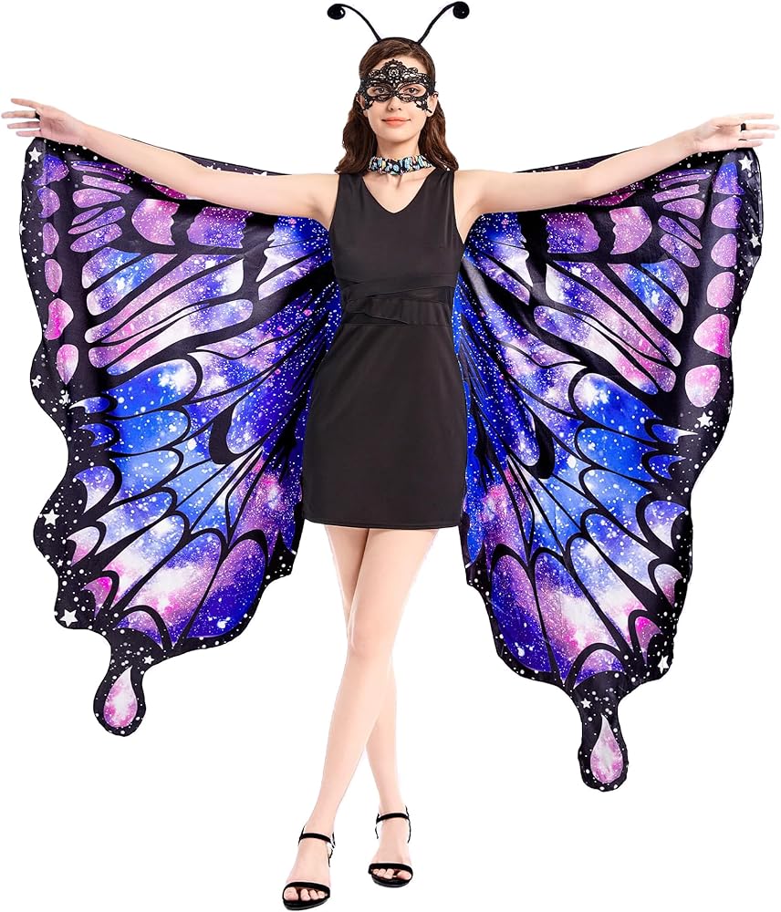 • 🎁 Package Includes 1 x butterfly wings shawl, 1 x lace mask, and 1 x antenna headband.