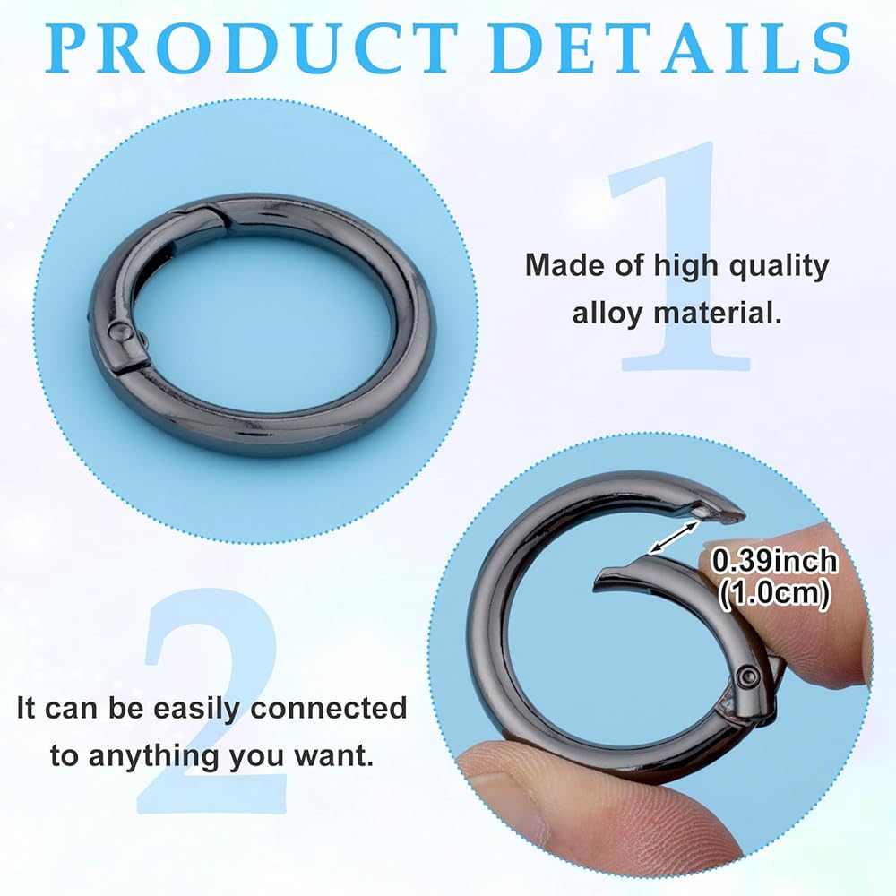 Smooth Surface: The surfaces of these spring o shape rings are specially electroplated polished, so they are exquisite, smooth, and the edges of the round carabiner snap clips won't hurt your items or skin, safe for using
