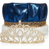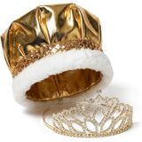 Royalty set includes a 2 7/8" high x 5 1/2" wide Gold Mirabella Tiara and 6 1/2" high Metallic Crown. Tiaras and crowns are suitable for most teens and adults